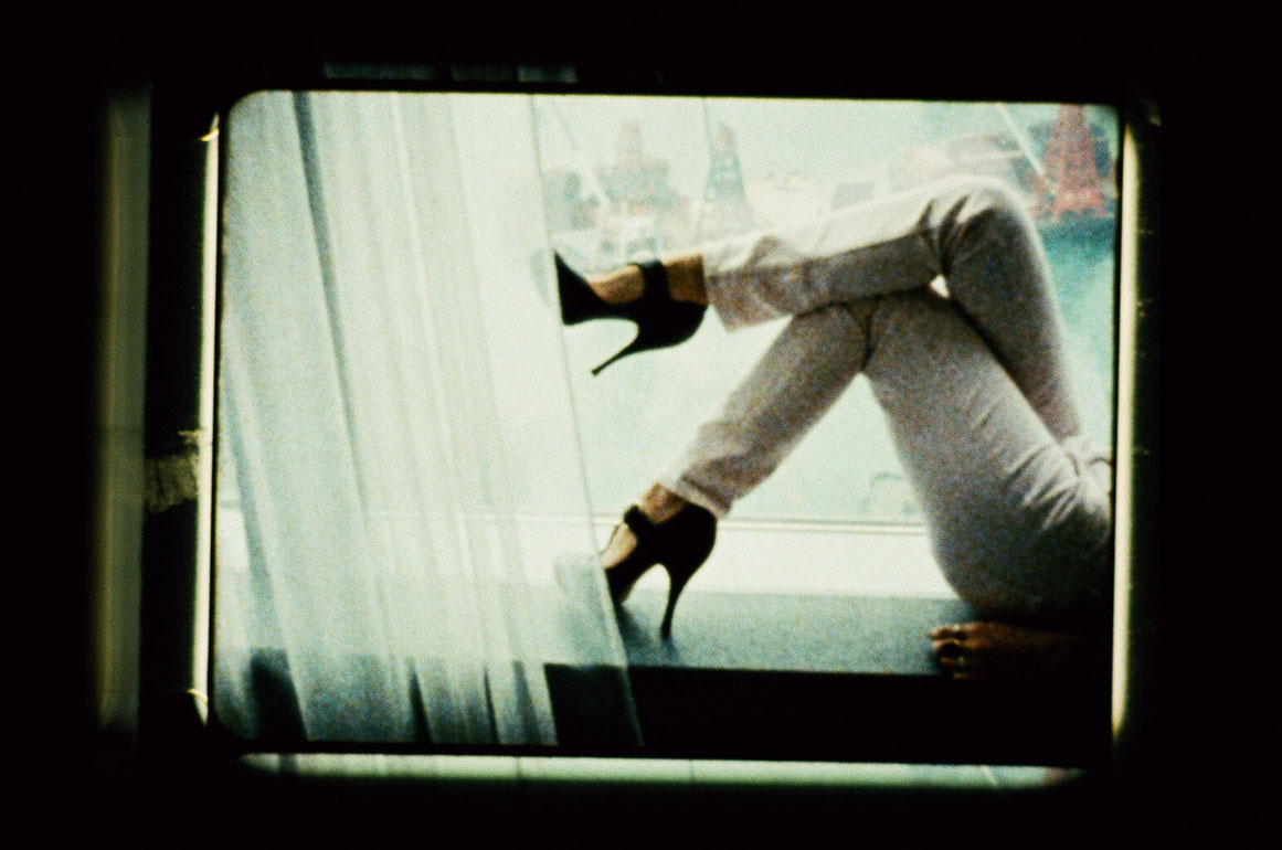 Silhouette black & gold lamps looking like a butterfly diadem and the curtain wall glides forth, dark in darkness, an exotic stage or set of a Sternberg film, and the room lightens, and SHE, whom we first only see from the back (like in an old painting) sits looking away, motionless, to then at the magic moment—magic! the image jerks wretchedly as though Leacock drunk or Warhol asleep—turn around and face the camera, as long and directly and secretively as the people in films by Friedl vom Gröller tend to do, and shortly thereafter break the flow; but just to simply laugh, like in a home movie, and with eyes open or shut sink back into herself in a dream state, absently, melancholically or posed or both or neither (SHE: “Asian beauty” soi-disant, Suzie Wong, Party Girl, brass skinned, Kmer-eyed, Parvati sculpture in pumps), while the film swings between high-reel advertising and rolling pans across the silky blue depths of Hong Kong harbor´s waters (dotted red-yellow by cranes, barges, containers) and stumbles across cuts to gloriously turn the face of the woman who is now lying on her back on the window bank at a right angle (as though the witch in Vredens Dag, whom one ties to the ladder and heaves upward), and distant automobiles stream along her cheekbones as in a dream and then her hand fills the shot with huge, colorful rings, like in Puce Moment and this hand turns and opens and spreads itself as a skin-landscape across the screen, turning the image into chaste pornography, shudders of focus and blur and the camera—as though it were all too dense and intimate and the calligraphy of the hand lines no longer legible—sweeps from right up close to far away, from hand to harbor and the far flung ocean, and here the film ends abruptly, imperfectly, too brief or too long, too mangy or refined, too inept or professional, and the more often one sees it (this film that makes you shrug your shoulders, annoyed, at first), the less awkwardly clunky it becomes, until evoked in the end is the semblance of jewelry, simmering silently, gently cruel, like the visage of the person portrayed.