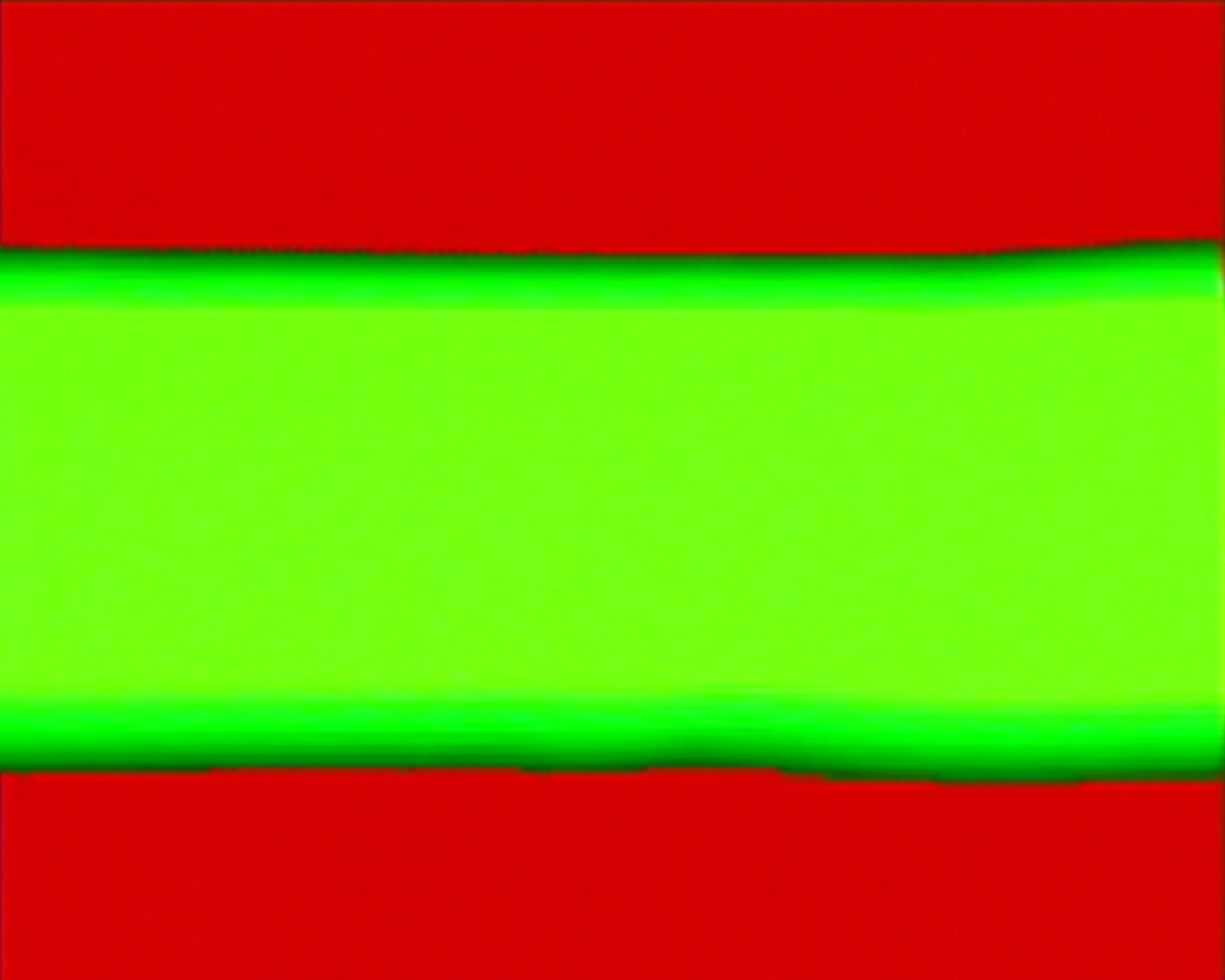 The brief pause of a bluescreen in the middle creates the basic mood for the even wilder second half, where the flow of electrons heads for a blowout. The colors, which were kept separate up to this point, appear in vivid combinations, the rhythms alternate and drown out and accompany each other, and the simultaneous accessing of the various channels turns into a brightly colored, psychedelic pursuit. At the climax of this turbulent journey the scene turns into a flaming whirl of red, orange and greenonly to end in quietly hissing black-and-white rasters. What remains are rhythmic afterimages that stand wholly alone without really requiring anything external.