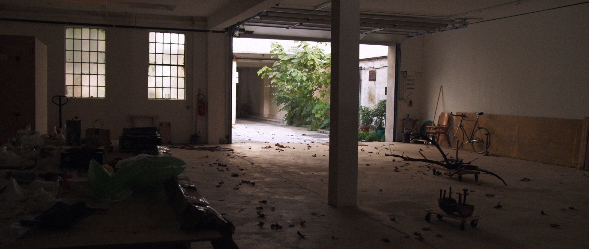 Hans Schabus has already put his studio through a great deal, for example the installation of a sizable model railroad just under the ceiling (Passagier // 2000) and a five-meter hole in the floor he dug himself (Schacht von Babel // 2003). Atelier covers the artist’s work space with another — filmic — room. The durations and sizes of shots, sequence of scenes and camera movements in this nine-minute work meticulously reconstruct the finale of Sam Peckinpah’s western The Wild Bunch (1969), and it also employs the other film’s soundtrack: Scenes of an almost empty street in Vienna are accompanied by jingling spurs and Mexican folk music. After just a few shots we are in the studio, which provides a view from the building’s roof, and the legendary over-the-top shooting begins. While the hail of bullets is not shown, the staccato editing with which Peckinpah staged his bandits’ end tears up the functionally designed studio: A swivel chair, two dark-green doors to a toilet, a full shelf, and so on remain unrelated spatial particles, and the cuts jump effortlessly between indoors and out. The absent film employed as a model prevents comprehension, as it applies its own system of coordinates to the space being filmed: Recurring shots from beneath chairs imply that someone’s hiding from something, movement on the part of the figures is suggested by the camera’s position, and random locations turn into centers of invisible action. At the conclusion: The massacre’s untouched location is shown in a long shot. Linking a late example of a western and an artist’s studio is equally melancholy and enigmatic: Was this the celebration of a withdrawn artist-as-subject’s last stand? Or was the studio honored as a scene of creative destruction? In any case, it represents a brilliant feat of cinematographic cross-mapping. (Joachim Schätz)
