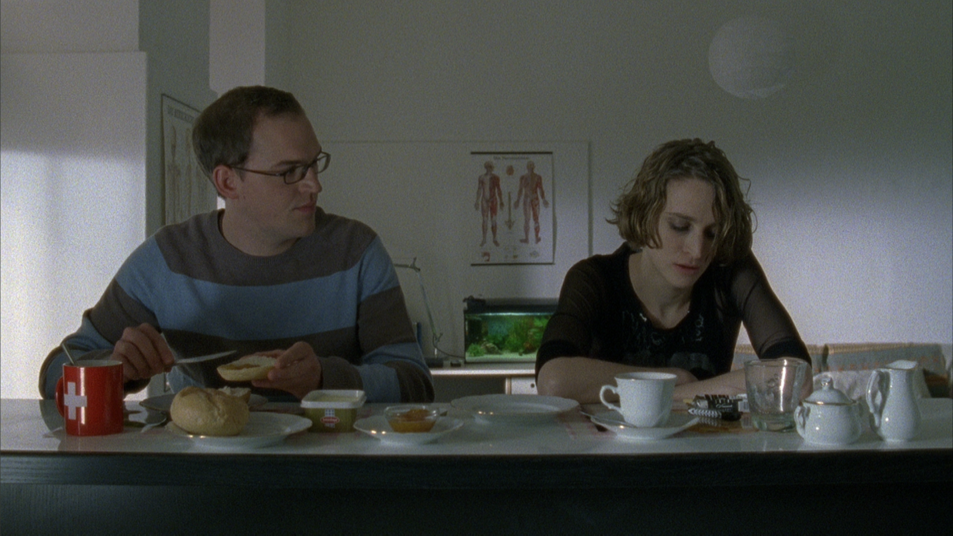 The woman, or “Jeanny”, the lonely girl in the controversial song, is in Konstantin´s mind more like the genie in “I Dream of Jeannie,” making wishes come true when let out of the bottle and freed of her constraints. For a while it seems as if two lost souls have found each other. But when Konstantin crosses a line with her, she lashes out. When she approaches him later, including physically, he instinctively pulls back and looks for something to protect himself. Until one day, after having enough of his constant refusals, she leaves. Then Konstantin runs into her again. While working as a paramedic he picks her up, once again she´s blind drunk, and he falls into her arms in the ambulance — and lets it happen. He wants the stability she provides, “There´s someone who needs you,” and she wants the same thing from him, even if only for the time being.