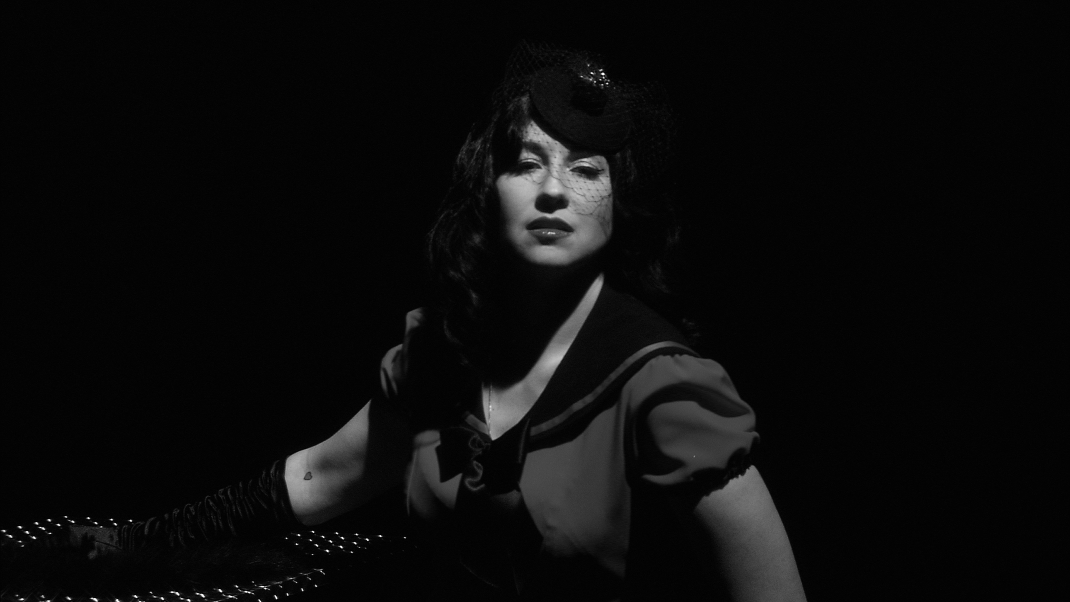 When the burlesque performer HARBOUR PEARLS smilingly calls up the traditional gestures of an erotic tease, in reference to a 1940s Egyptian film in which the singer and dancer Naima Akef embodies both the belly dancer and the flirtatious captain, her smile is no longer that of an available object. On the contrary, the knowing grin, directly addressed to the camera, together with the complicit winking between the stripper and the observing lady (both played by Daschner), creates a distance from the glamorous and stylish, almost sterile staging of events. At the same time it comments on the fantasm as well as the liberating laugh- ter of the lesbian chorus at the end.