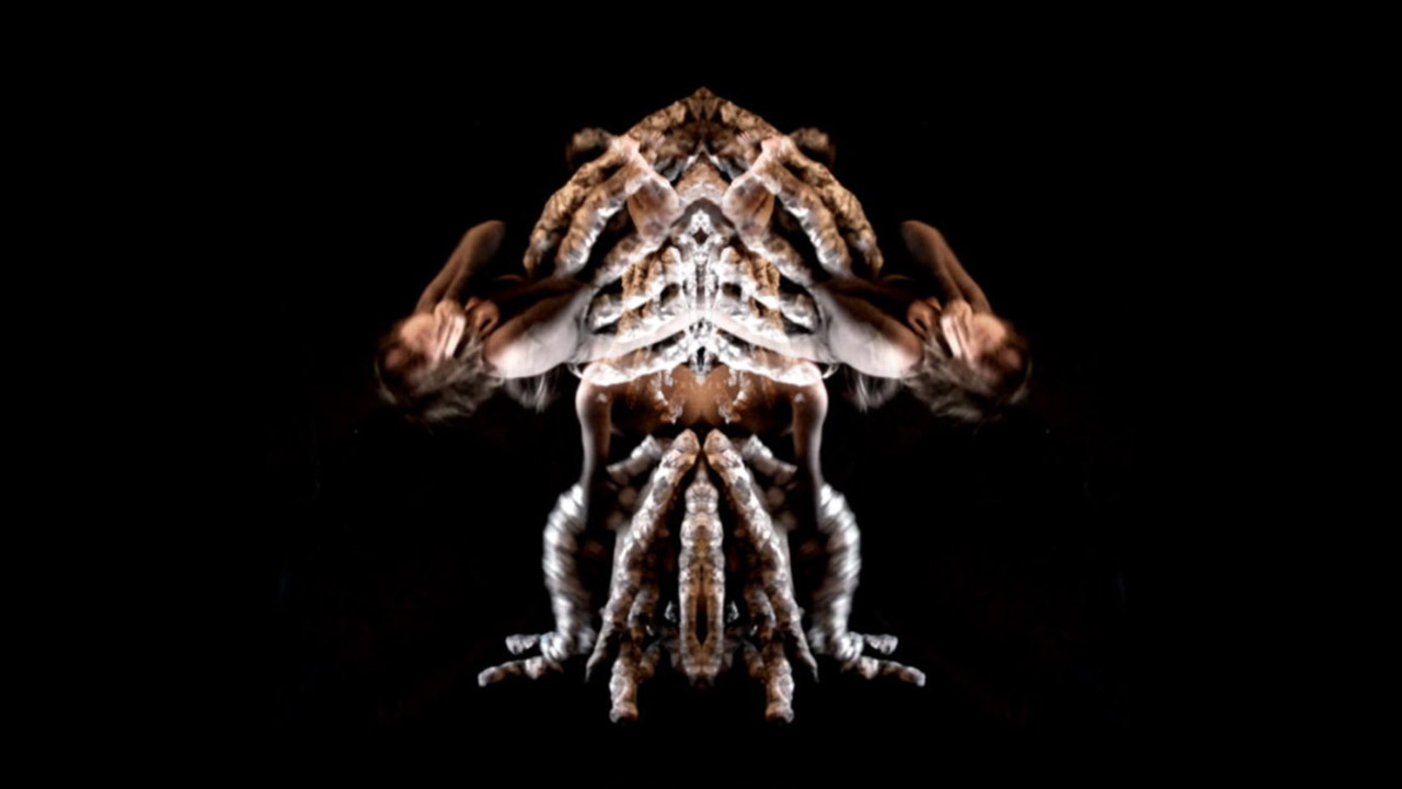 A layered sequence of mirrored shots depicting a dance performance, pushing the human eye to its limit. The dancer begins to fade into the whirl of her tentacle-like skirt, becoming increasingly hidden behind mutating Rorschach creatures. With the steadily surging density of sound, we too begin to lose ourselves in the dream-like frenzy of images, in the procession of subliminal spirits invoked by Reinhold Bidner. Are there “real” answers or do we only project them into our head? Are we lonesome individuals in need of protection, or multiple creatures driven by egoism? (Sebastian Höglinger)
