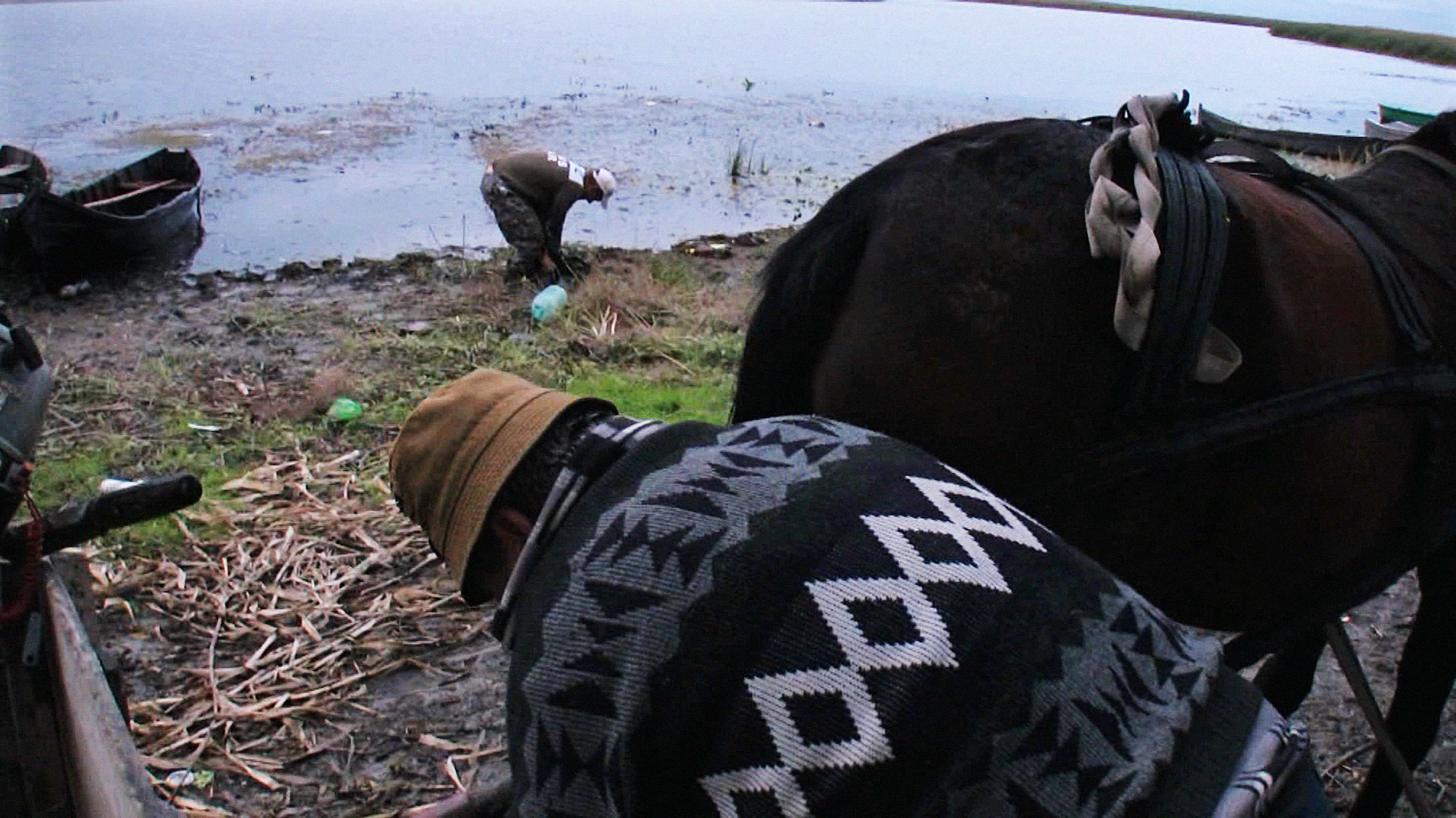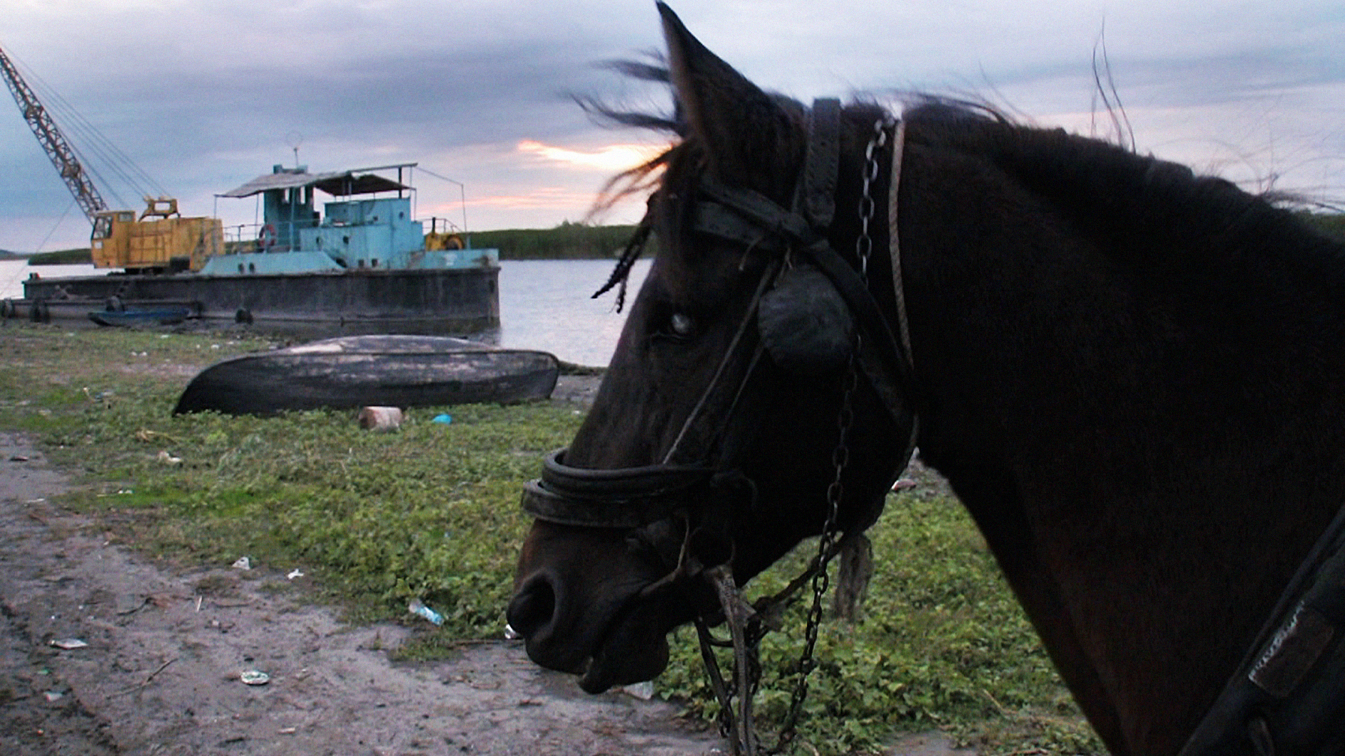 The era of the postcard has passed. A postcard as literal expression of the beautiful and foreign has become an anachronism affordable for only those who are in no great hurry. In this sense, the first image in Postcard from Somova, Romania corresponds with the shots of the film that follow: set to the sounds of Ralph Vaughan Williams’ “Partita for Double String Orchestra,” one sees a clock that instead of melting away like Salvador Dalí’s, lies broken in pieces on the ground. Following are images of a place where time does actually seem to have stood still: the Somova harbor on the Romanian Danube Delta. Dogs and cats wander in their search for food on the shores of the river. Goats graze in a field and engage in playful territorial battles. A horse tethered to a wooden wagon eats hay. Although documentary films are often said to engage in “excavation,” Andreas Horvath does exactly the opposite here. One clearly senses the way that the camera buries itself in the small strip of shore amongst water, field, and woods, registering every detail, no matter how small, with the greatest precision, while the wind rustles incessantly in the treetops. The refuse that the river washes ashore here has traveled from afar and is here to stay. Like the broken clock, the heedlessly tossed garbage has long become part of the scenery. Afternoon almost imperceptibly gives way to evening as two fishermen happen to pull in to dock and drive off the horse carriage. By nightfall, all that remains are the goats. Postcard from Somova, Romania tells of what seems to be useless waiting; thus achieving an extremely high quality in the observation of this state. A snapshot with enduring beauty.