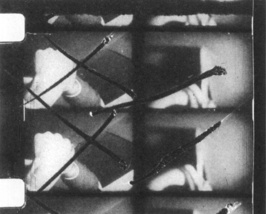 This film has two parts. In the first part, the film material is on 8mm uncut film, so that in the 16mm projection a 4-fold film can be seen. In the second part of the film, the 16mm film is shown in full size, that means the picture is now enlarged four times its size. I drew over the film after the fact, and abstracted it in many different ways. (E.S.jr.)