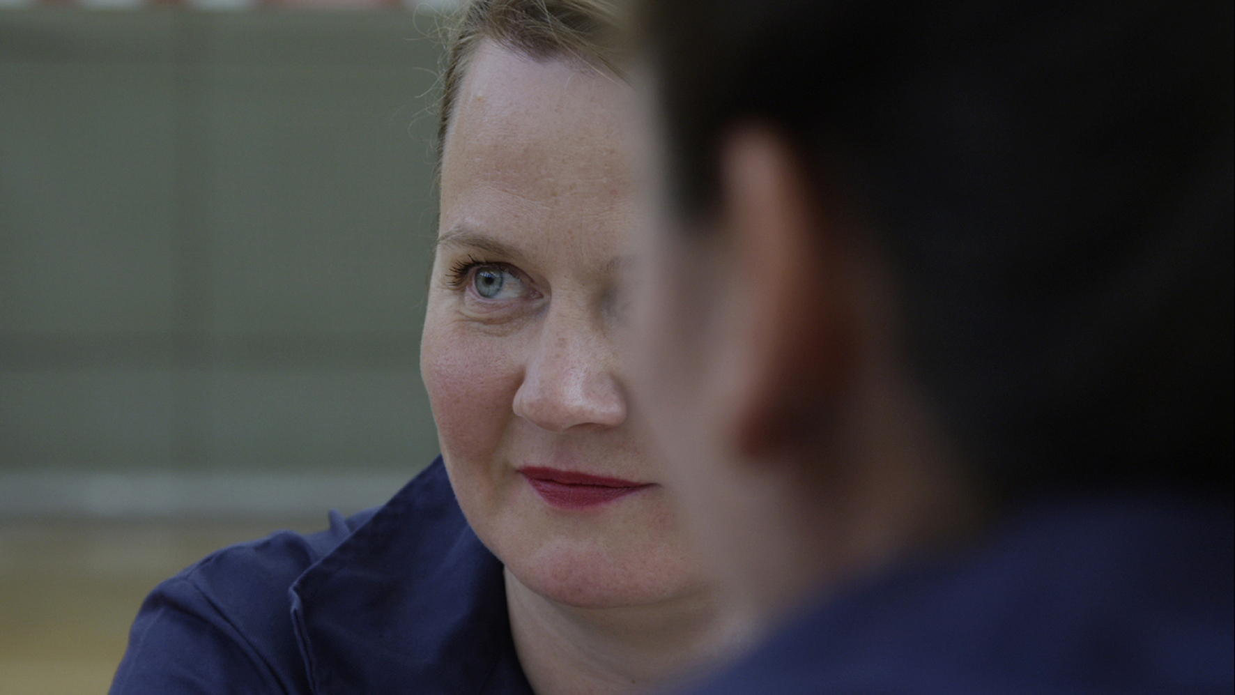 Love is...? Michaela Schwenter restages Plato´s Symposium in a gymnasium. A moving camera circles three women and a man gently as they converse – interspersed with philosophical text fragments – on the topic of love. Both in its form and its content, it presents paradigms of value and interpretation, which transcend the austere setting. No matter how much we ponder the notion of love, we still don’t know quite what it is.