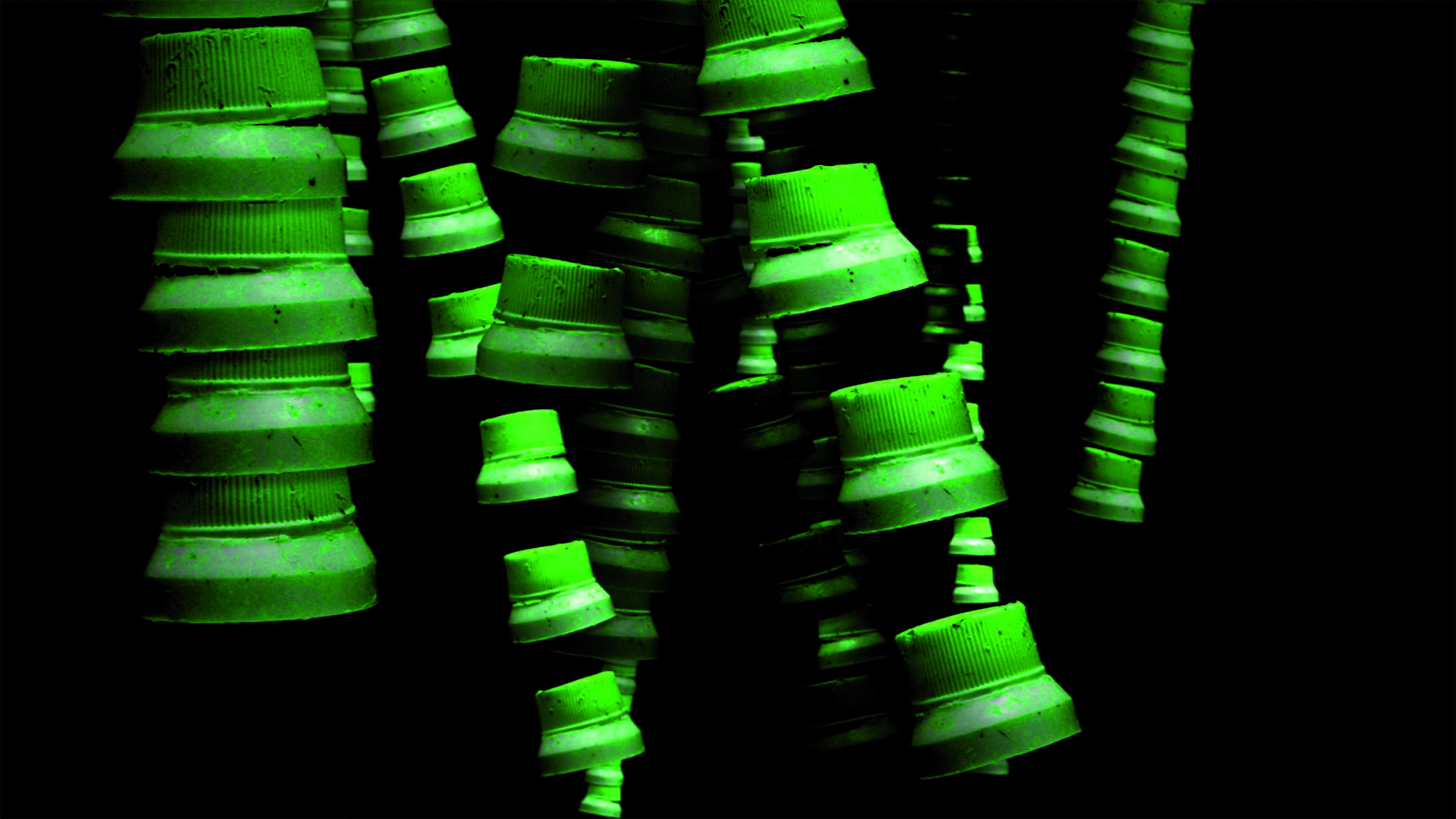 In Nikki Schuster´s stop–motion–animation Parasit, organic and non–organic, documentary and animation engage in luminuos mutations. Billy Roisz´ experimental, smoldering soundtrack accompanies the unfolding of bizarre microcosms in the depths of trees and crevices. Sizzling, the living combines with the dead, the trash with plants, producing hybrid sculptural organisms with fantastical DNA. In this, the animation has a quasi–parasitical relationship to the documentary, grasping its formations and twisting them onward in nocturnal metamorphoses. Root–like forms proliferate in the dark, transform into long, strands of hair, and wrap themselves with smacking sounds around green, red, and yellow spiral bodies. The hair, a matter, which is equally living and dead, stands emblematically for the synthesis of the natural with the artificial: like the cells of an imaginary body, plastic rings and gear wheels float chaotically, group to bone pieces and eddies, mix together with plastic hangers and pieces of grating. In the end, green caps twist like little UFOs through the image from top to bottom, swing like garlands before a black background before fading away in the dark. Afterwards, the camera pulls hastily out of the nocturnal housing back into daylight–as though having just had a forbidden look into the backside of nature. (Alexandra Seibel)