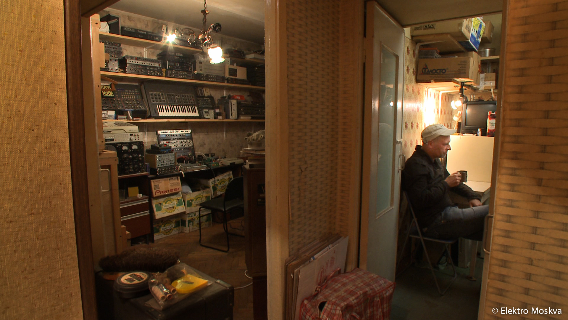 Lo-fi sound, tonal imperfection: Sensation. Elektro Moskva is an essay-like narrative about Soviet and post-Soviet “electronic history” – from the Theremin and the synthesizer to the bugging devices of the KGB. Inspired by spherical-cosmic chill-out sounds and experimental tapestries of noise, collec- tors and tinkerers rave about the quasi-futuristic devices. This is an electrified pagan cult, somewhere between military exercise and popular culture: “You felt like in a spaceship.” You still do. (prod-note)