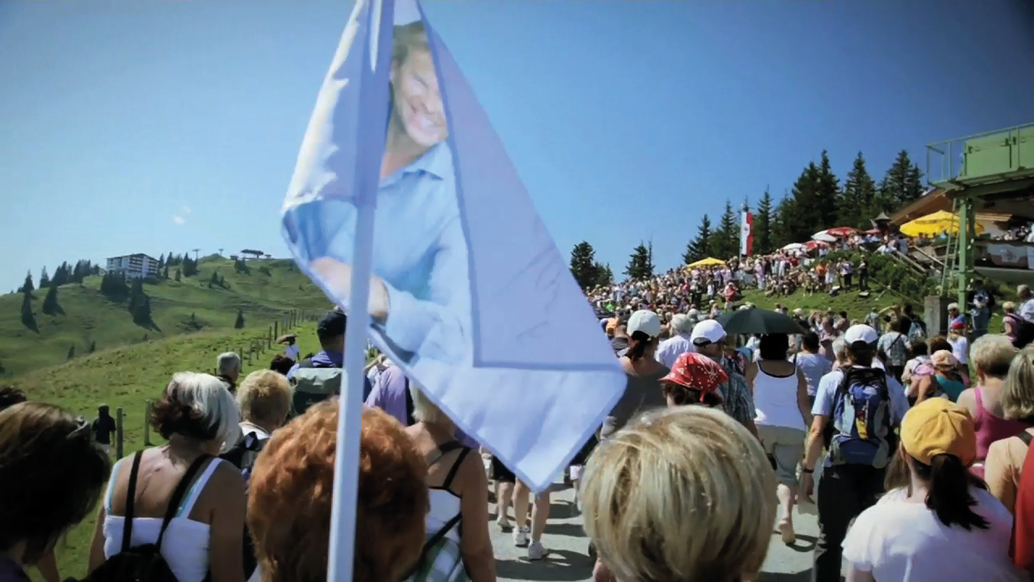 As Gilles Deleuze says of the continuum of image and sound in Hors-champ, `The audible lends a specific presence to that which is insufficient, visually´. This documentary miniature, too, proves the power of the acousmatic, approaching the climax of the pilgrimage primarily through the soundtrack: conversations, sounds, music, and voices, from both `on´ screen and `off´ that convey the anticipation of a vision. An initial speaker builds suspense, and then he is there, `Hansi´, and only very briefly in the picture. His voice, however, remains present, and in the concluding sermon by the military preacher, which likewise comes from off-camera, it becomes clear that in this staging, ultimately, only one person can be the star. (Claudia Slanar)