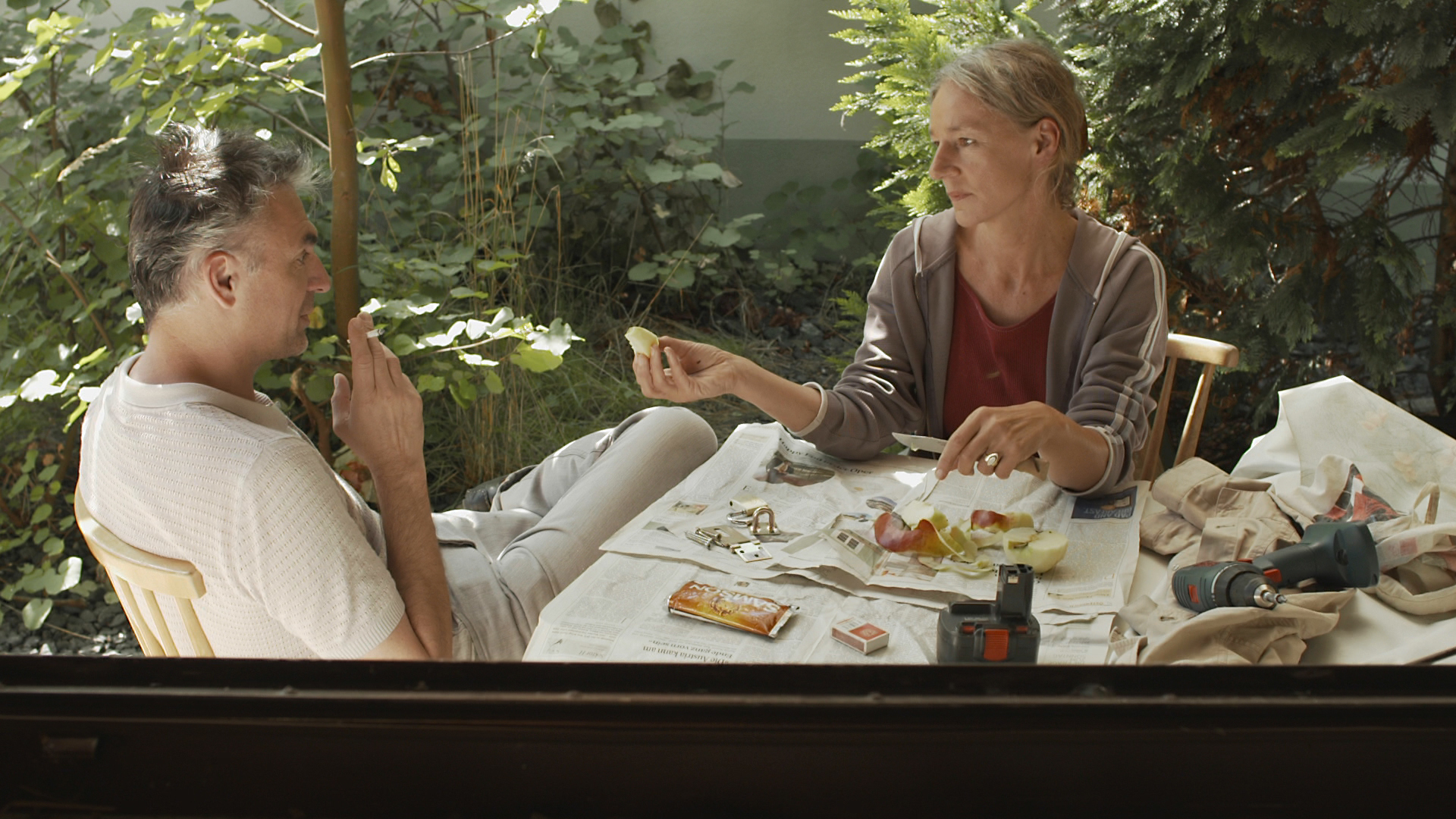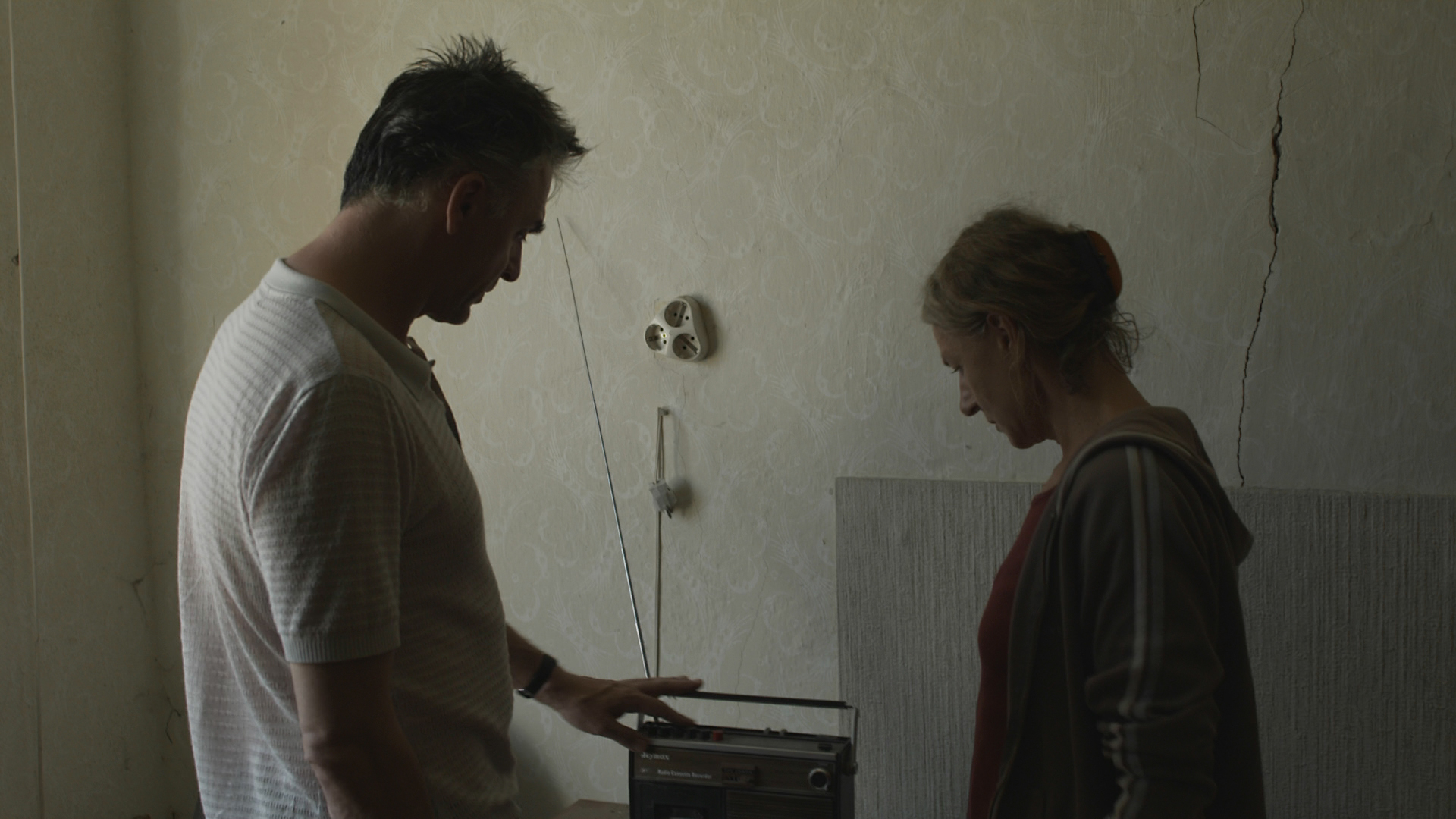 The calm, hand-held camera shows a man and woman driving in a car, a walk through the dusty, low-ceilinged rooms, and a conversation on the terrace. The image seems to breathe, like an extra, anonymous presence. Perhaps the old love of the two lurks here, maybe a nightmare from Andi´s youth. Martina Spitzer and Nenas Smigoc improvise based on a screenplay by Ludwig Wüst. Their bodies and gazes tell of two views of reality that don´t coincide in the narrowest of spaces: that of the woman, whose love endures, with hopes of a continuation after ten years. And that of the man, who is much too occupied by his own wounds to react to her yearning nostalgia.