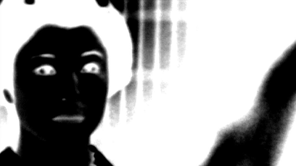 Faces and body parts inverted to the negative, zoomed in on, with their motion slowed, so that they are transformed into slowly moving surfaces in shades of gray; facial expressions are intensified by lingering, contours blend into the indefinite surroundings, the precise rhythm is highlighted by echoing sound.