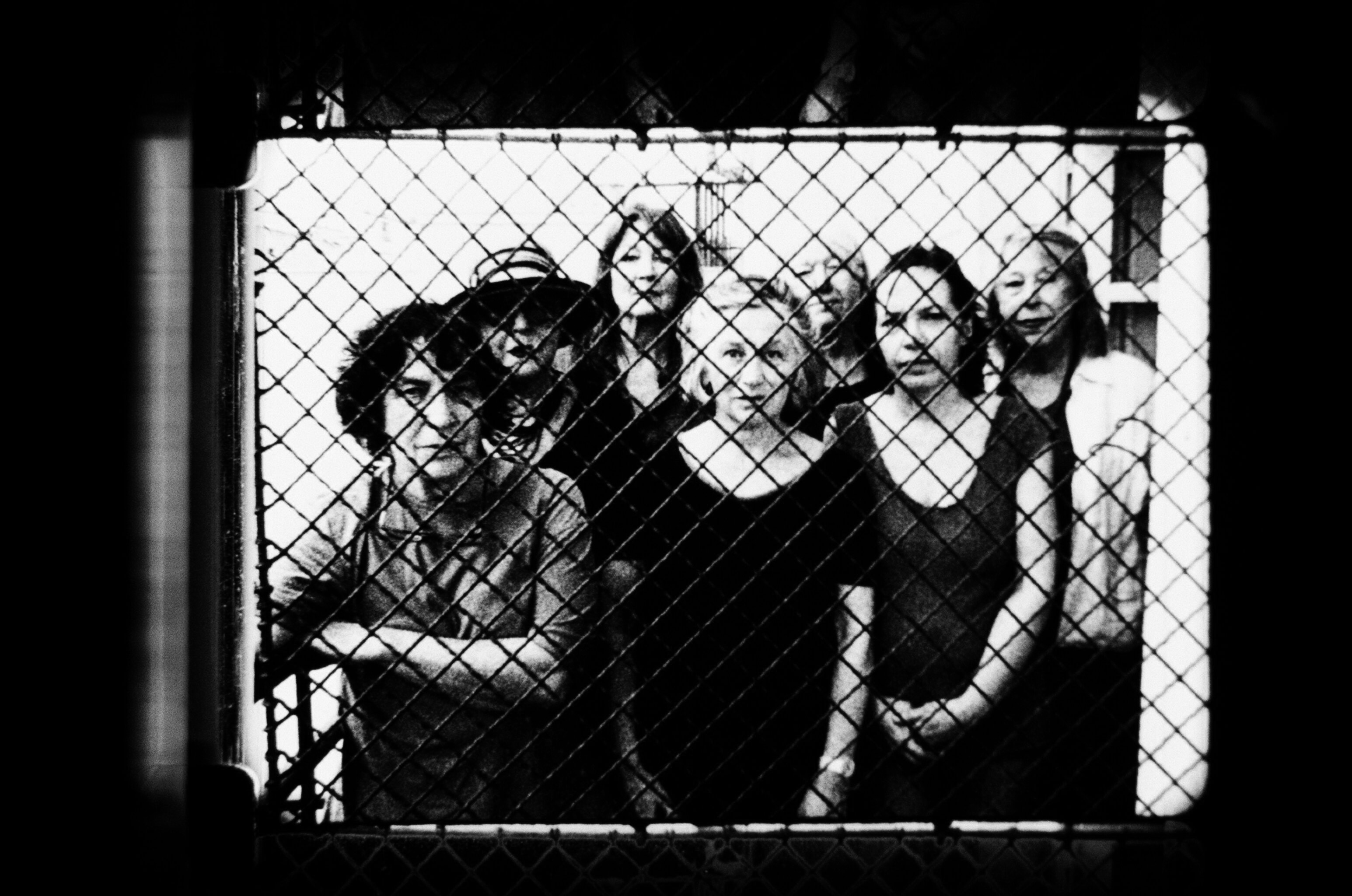 Guilty Until Proven Innocent is a portrait of a group of women. They make their appearance in a flare of light – there are seven. The camera records them in medium close-up, as torsos from the waist up, seen through a fence. They stand quietly, close together, looking into the camera. They do not relate to one another but solely to the camera. At first glance what they appear to have in common is their advanced age. The shared years of the seven women, the wire mesh of the fence intersecting the image and the line-up of their bodies constitute an arrangement that creates a homogenous surface, sustained even when a cut replaces one of the women with Friedl vom Gröller herself. At all events, their facial expressions heighten this sense, uniformly relaxed and without betraying specific emotions or thoughts – bordering a fine line between smiling and being severe. This self-conscious blankness of the woman behind the wire fence raises questions in regard to the film title: Guilty Until Proven Innocent – Guilty of what? Why this exclusion?