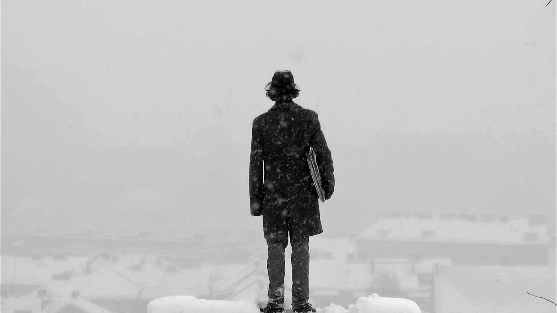The image is black-and-white, remains in the past. He—the man, who from a distance is reminiscent of Peter Handke (without glasses)—moves through the wintry landscape somewhat like a character from a slapstick film. It is cold; the view is displaced, gloomy, fog on snow. She—the woman—sits nearly emotionlessly, motionless on a ladder, and is—doubly—portrayed: painted, and talked about. No word about Ilse gathers all of the basic data, cites all the facts that are to be known. But does it thereby exhaust the image? Things you are meant to remain silent about are usually what you want to talk about most.