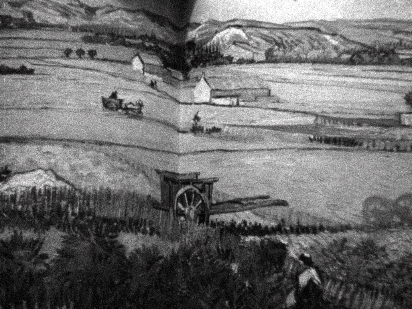 A landscape, seen not through the camera but as a reproduction (Van Gogh painting), briefly, barely perceptible. (Ernst Schmidt Jr.)