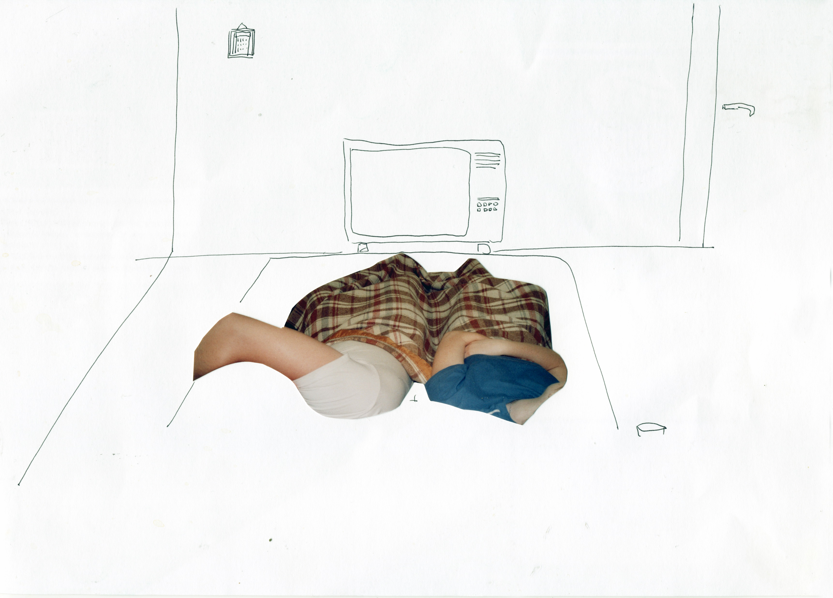 A Trial. The Transcript. tells the story of how an evening presumably planned as a relaxed gathering of friends ended in rape. Fiona Rukschcio alternatingly aligns fragmentary testimony given by a young woman and the accused, as read by sober off-screen voices that reconstruct the events of that night step by step. The recorded accounts increasingly diverge, the formulations of the accused seem rehearsed – and no less significantly, his impassiveness simultaneously transmits the emotional detachment inherent to judicial procedure. The soundtrack finds visual correlation in collages composed of simple black and white sketches and fragmented photographs: The faces of the photographed bodies are excised, barring sight of facial expression and emotional legibility. The camera complements the narrative rhythm of the off-screen voices, zooming in on the collages and lingering at the center of the image. Details are pulled into the middle of the frame, breaking up into pixels and dissolving into abstract fields of color, before the narrative perspective switches, and the image zooms back out.