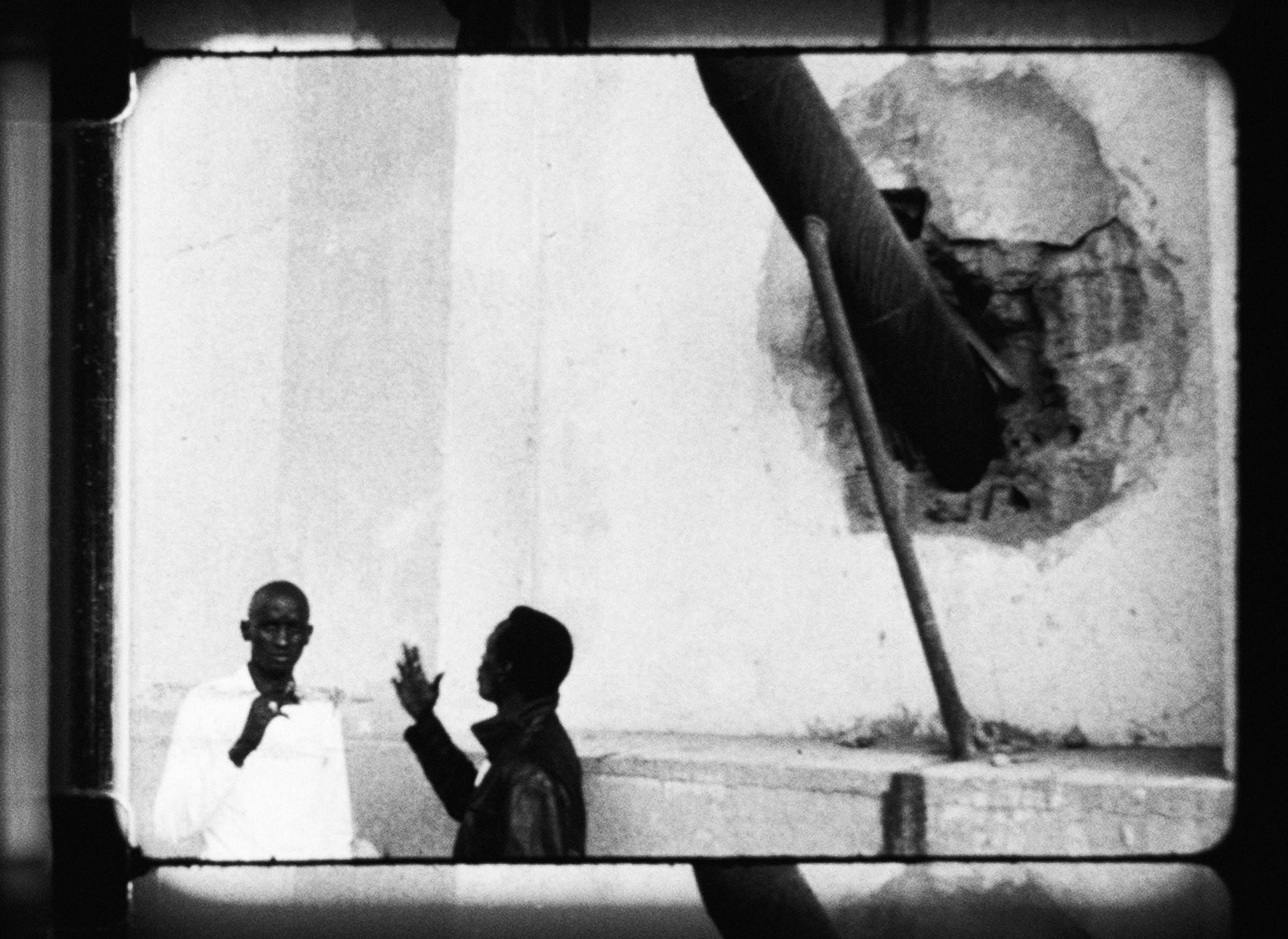 Off-screen the sound of drums is heard. When the filmmaker meets with a dancing human figure, she is also set in motion. Her sweeping gestures and darting leaps in fact continually burst the confinement of the film frame, forcing the filmmaker to pursue the young dancer and adjust to her. The smiling dancer can barely be captured. It is almost as if the filmic intervention is reversed, as if it is determined from the opposite end of the optical axis – a notion Friedl vom Gröller has often introduced in her filmic portraits. This displacement animates the relationship between the one filming and the one being filmed, escaping the old hierarchies and familiar traps of traditional ethnographic practice. The filmmaker from Austria and the dancer from Dakar communicate with one another through their respective media. The black and white 16 mm material was shot in Senegal in 2014, at the peanut factory “once famous,” according to Gröller. The energetic performance of the dancer took place in her courtyard. The film ends when the dance is over.