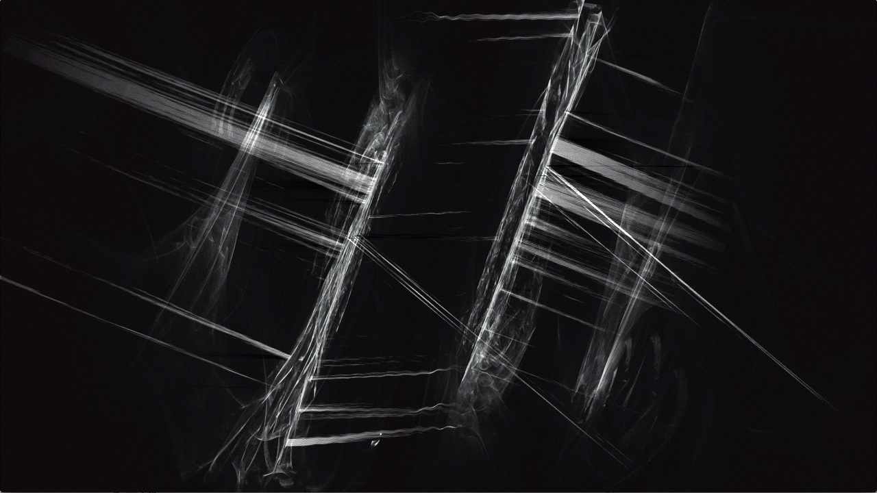 Abgesehen davon kommen Random-Faktoren nur noch in einer zweiten Weise zum Einsatz, nämlich wenn ein Bild mittels vieler Millionen verstreuter Pixel gemalt wird. Diese Methode eignet sich zum Visualisieren von Kraftfeldern (wie Eisenstaub, der magnetische Feldlinien zeigt), und um die Interaktionen zwischen Oszillatoren zu veranschaulichen. Dabei spielt es keine Rolle, ob die winzigen, malenden Objekte zu Beginn zufällige Anfangspositionen haben, weil sich die Unterschiede durch ihre große Zahl ohnehin verwischen. Was bleibt ist ein leichtes Rauschen, was einem code-generierten Video oder Bild aber durchaus zum Vorteil gereichen kann, weil es dadurch lebendiger wirkt. Genausogut könnte man jedoch auf diese Zufälligkeit verzichten und die Millionen Pixel von zuvor festgelegten Positionen starten lassen. Am Aussehen des Bildes würde das, abgesehen von besagtem Rauschen, nichts ändern.