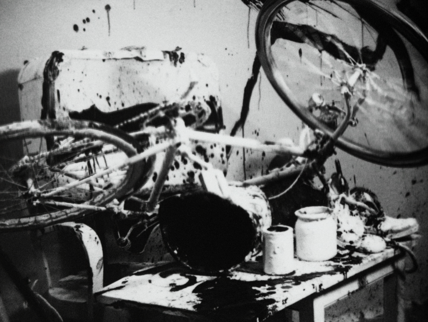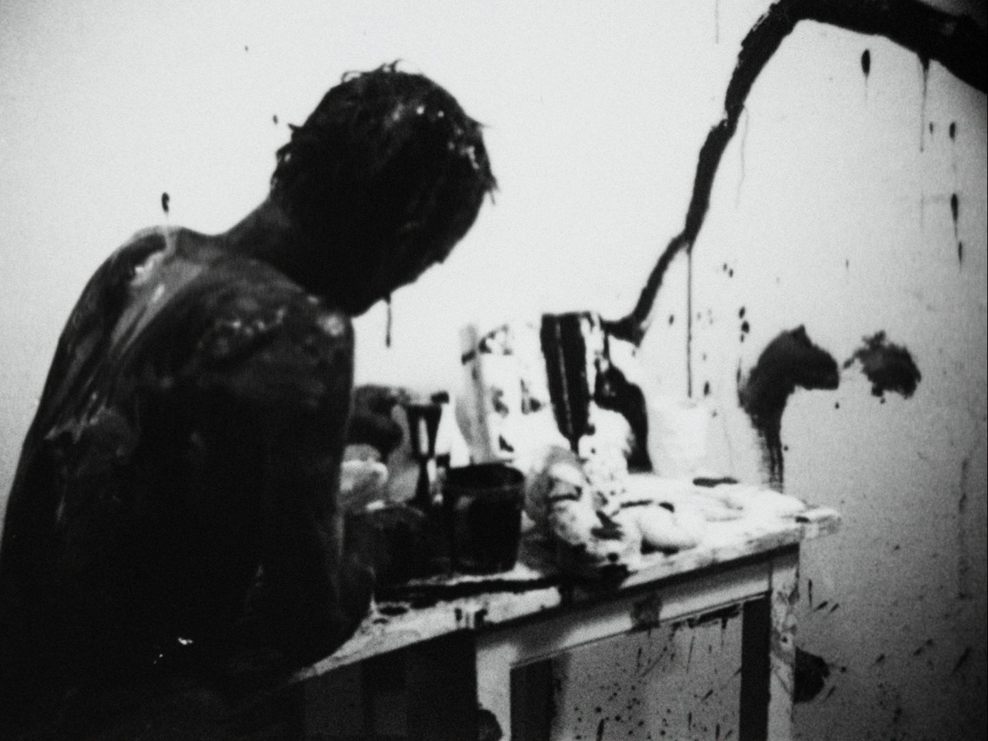 Kren´s first film of an "action" by Günter Brus. This three-minute film was far more akin to the American-style "happening" in that the content was not particularly extreme. It was built up from items such as broken bicycle parts, a nude model, pieces of furniture and these elements were then obscured or transformed by having a layer of paint thrown on them. Kren films short sequences from many different angles, using high-contrast black and white film to create an effect not unlike that of a painting by Robert Kline.