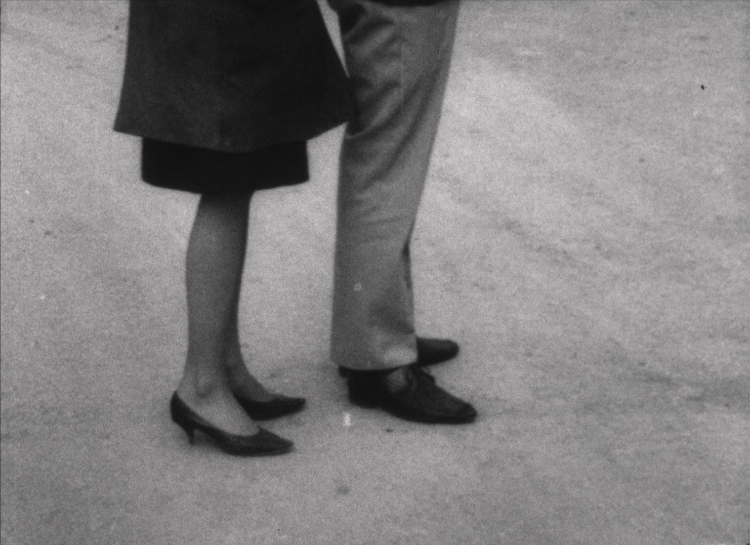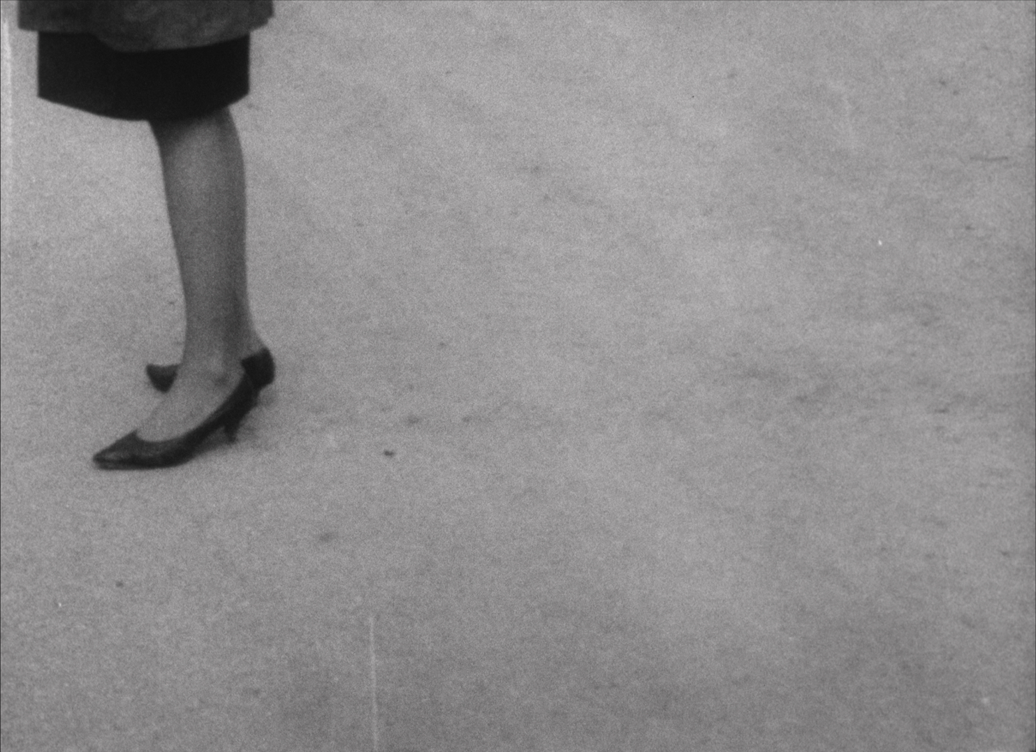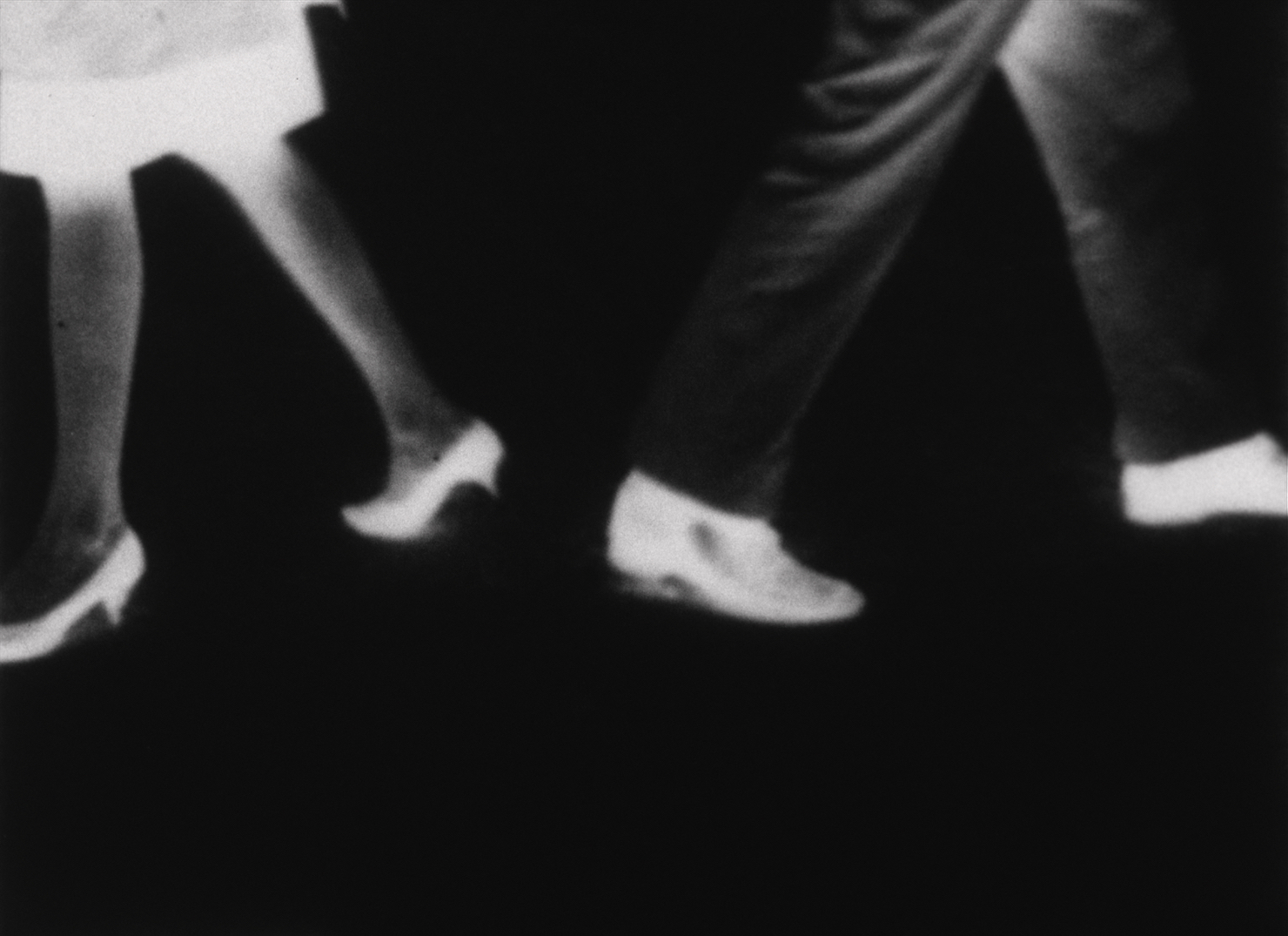 Go is the axis of FILMBLOCK I: the precise aleatoric narration. Chance and the will to form are perfectly balanced out, everything is change. The elements are further reduced in Go: the legs of a man and woman, moving closer and farther away, still, this all reproduced as a negative, with an atonal aggression on the soundtrack – one could see it as the story of an unsettled relationship. Adrian for his part might be dissatisfied with the fact that people almost compulsively would interpret it in this way, but if he didn´t want that to happen then he should have used more abstract material. (Hans Petersen)