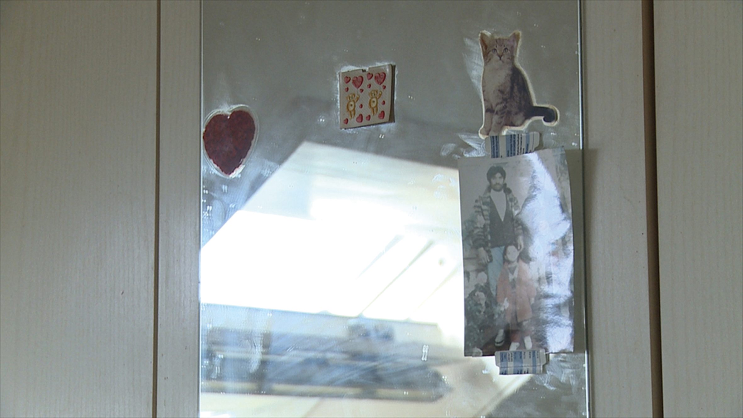 The tightness and poignancy of the video underscores the story´s personal, and in part intimate perspective. We hear the voice of the narrator—who speaks, incidentally, the best Austrian German—traffic noise, and set acoustic pieces from the group home. We see various close-ups of the room, including a few private items, such as yellowed family photos; narrow corridors, barred windows, and some views. These are of railway grounds, train tracks, hence, images that (could) represent movement, progress, and transit. The sound and picture levels synchronize again and again, are linked uncomfortably, directly, and indirectly: The restricting shots of the young asylum seeker´s living environment correspond with the permanent fear of deportation and biographic standstill of which he speaks. After fifteen years of torturous waiting, there is no tolerance for, or understanding of this situation. Remaining are the simplest, smallest, and most normal wishes: those of a life worthy of a human, an existence. (Eva Simmler)