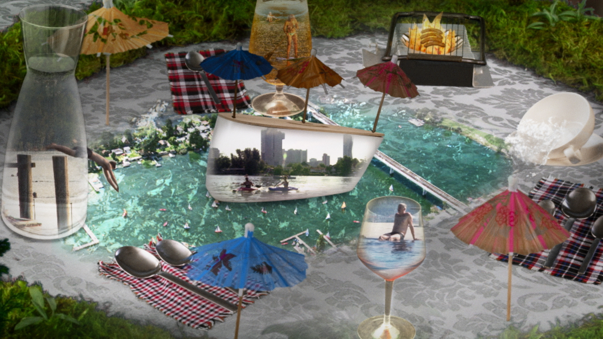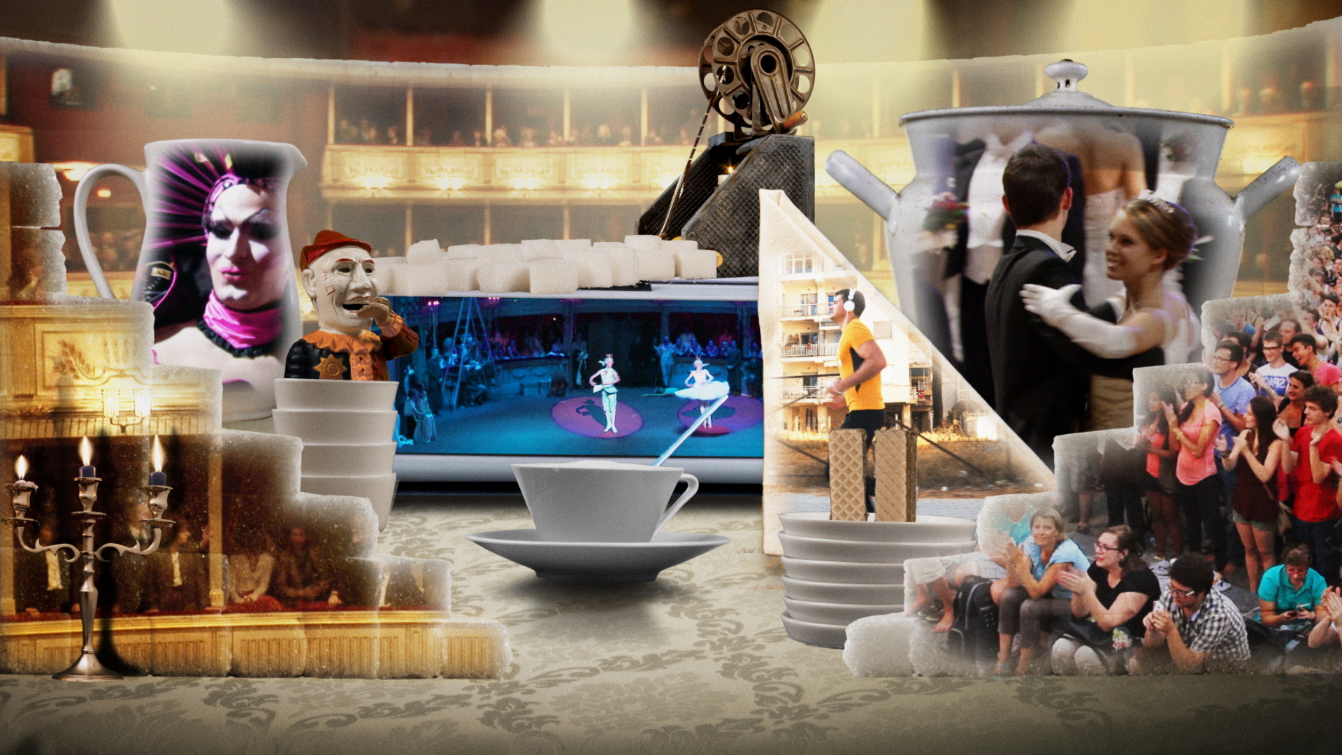 The coffee table is a microcosm of Vienna because basically, you do not need to leave the coffee house to travel once through the whole of Vienna. This idea eventually led to the idea of a miniature journey through the city, staged with saucers, cups, plates, knives, forks and souvenirs – garnished with projected memories and the many starters, main courses and desserts one can so often find here. (Virgil Widrich)