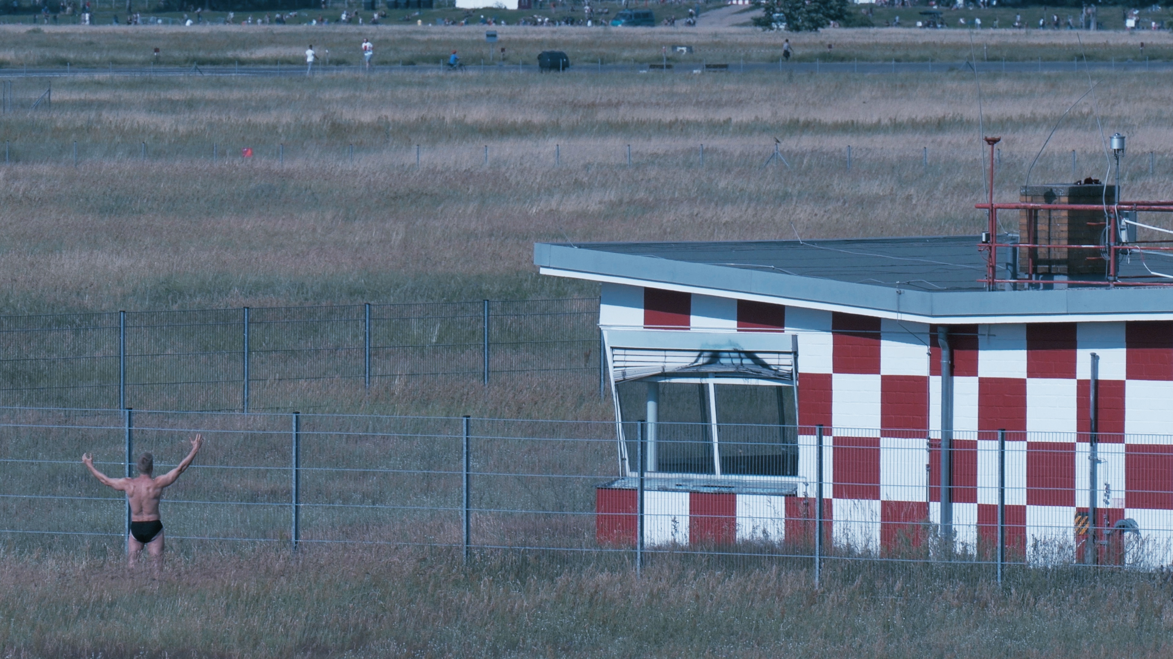 The Templehof field in Berlin can be seen as a site where a civil society prevailed against commercial and military interests to establish a free space. What was once an airport is now a location for multifaceted projects such as urban gardening. During the refugee crisis of 2015 Tempelhof was the largest emergency camp in Berlin. In his film Making Off (Germania Dreamland) Istvan Gyöngyösi plays on the historical semantics surrounding Tempelhof: While the Nazis hoped to extensively expand the airport, the place is equally associated with the Berlin Airlift. Commencing with the arrival hall of the long defunct airport, a loose constellation of fictional stories unfolds, only partially "filmed" — instead, characters such as Katja or Ilyas are brought to life by the voice of the filmmaker reading the screenplay out loud. These characters become automatically associated with the documentary images seen onscreen, especially the International Aerospace Exhibition ILA (called a weapons trade fair). Germany is seen as a society that can afford to celebrate its leisure time virtually astounded by aircraft technology. Gyöngyösi makes a clear analogy between the demonstration of power discernible in this spectacle of technology and Nazi efforts to turn Berlin into Germania, the name planned for the world capital of its future empire.