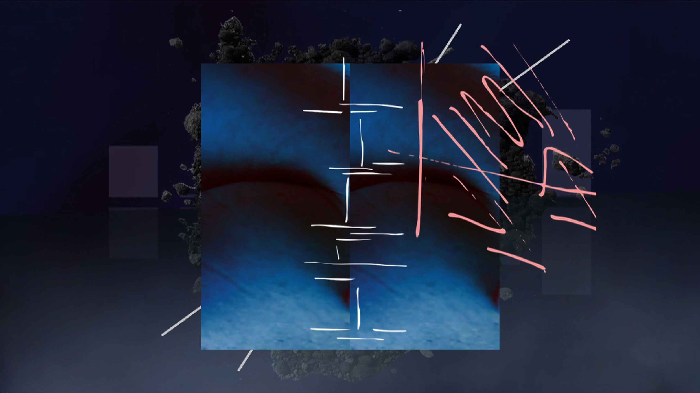Ideal Deficiency deals with bodies and their subjectivization in an era of mechanized controls. From the technical euphoria of modernism through to the current ability to quantify algorithmically, the line is drawn clearly: they are all such beautiful patterns. There is no outside. Permanent variability of the same. And yet they are there: these strange superimpositions, these picture formats that do not simply glide seamlessly, but instead, are full of ruptures. Ideal Deficiency, the ideal deviation, can be programmed. But it also occurs as an uncontrolled effect of program errors and hardware crashes. Therefore, "ideal" is not the smooth marble or body, but something that will abruptly adjust it, that shows a tear in the image, like the black line that once again slices the circle. Or the ash that remains behind: in the first image and also the last. (Yvonne Volkart Schmidt)