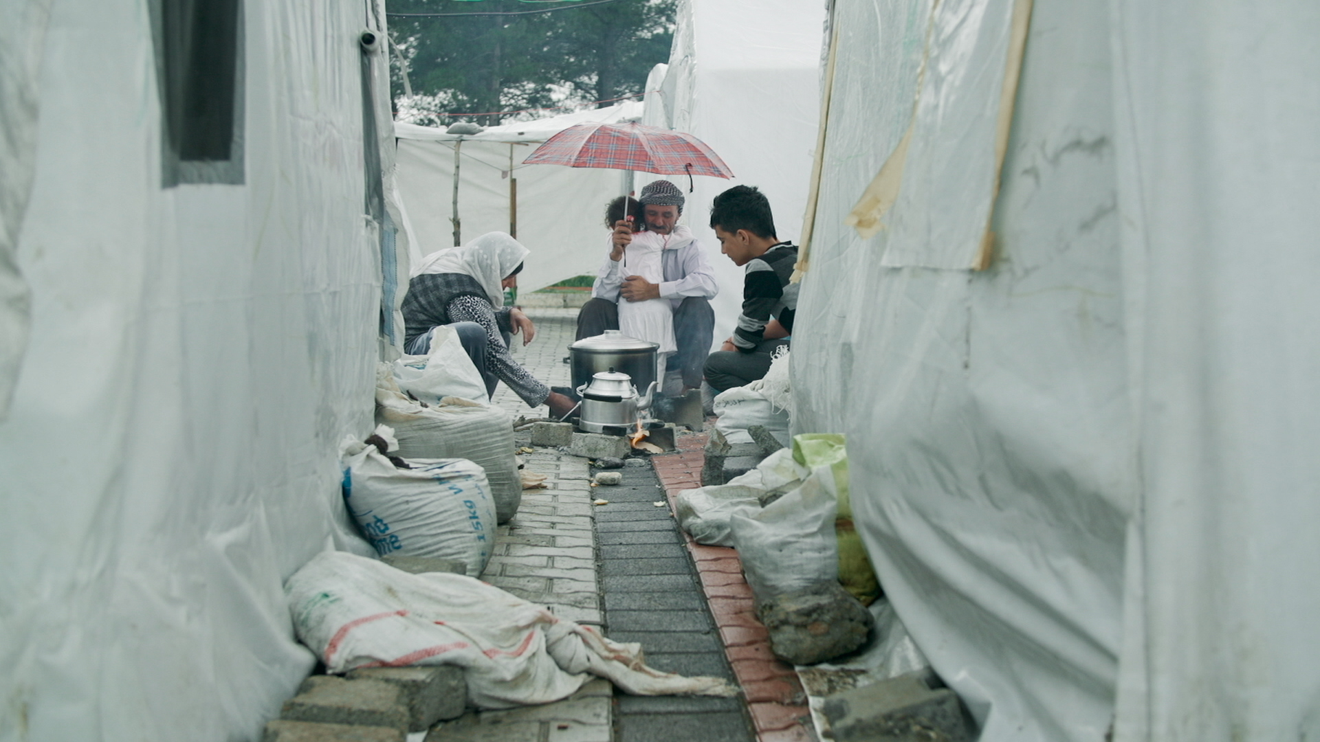 We become acquainted with the tent as an interim site situated on the fringe of society due to its deviance from the norm; characterized by rituals that replace everyday actions. The refugee camp´s tent city functions as an "other space" whose time is also an "other" time (heterochrony). What the wind took away presents how the little actions of everyday life merge to a spatio-temperal experience, and how the stories of flight, normality, and desire—but also of trauma and pain provide an emotional frame for the matters that must be taken care of on a daily basis. And the film lets us contemplate where and when life in a refugee camp might start and end: how do you decide when to leave this interim place where you are at least intermittently safe, and take off into an uncertain future. (Andrea B. Braidt)