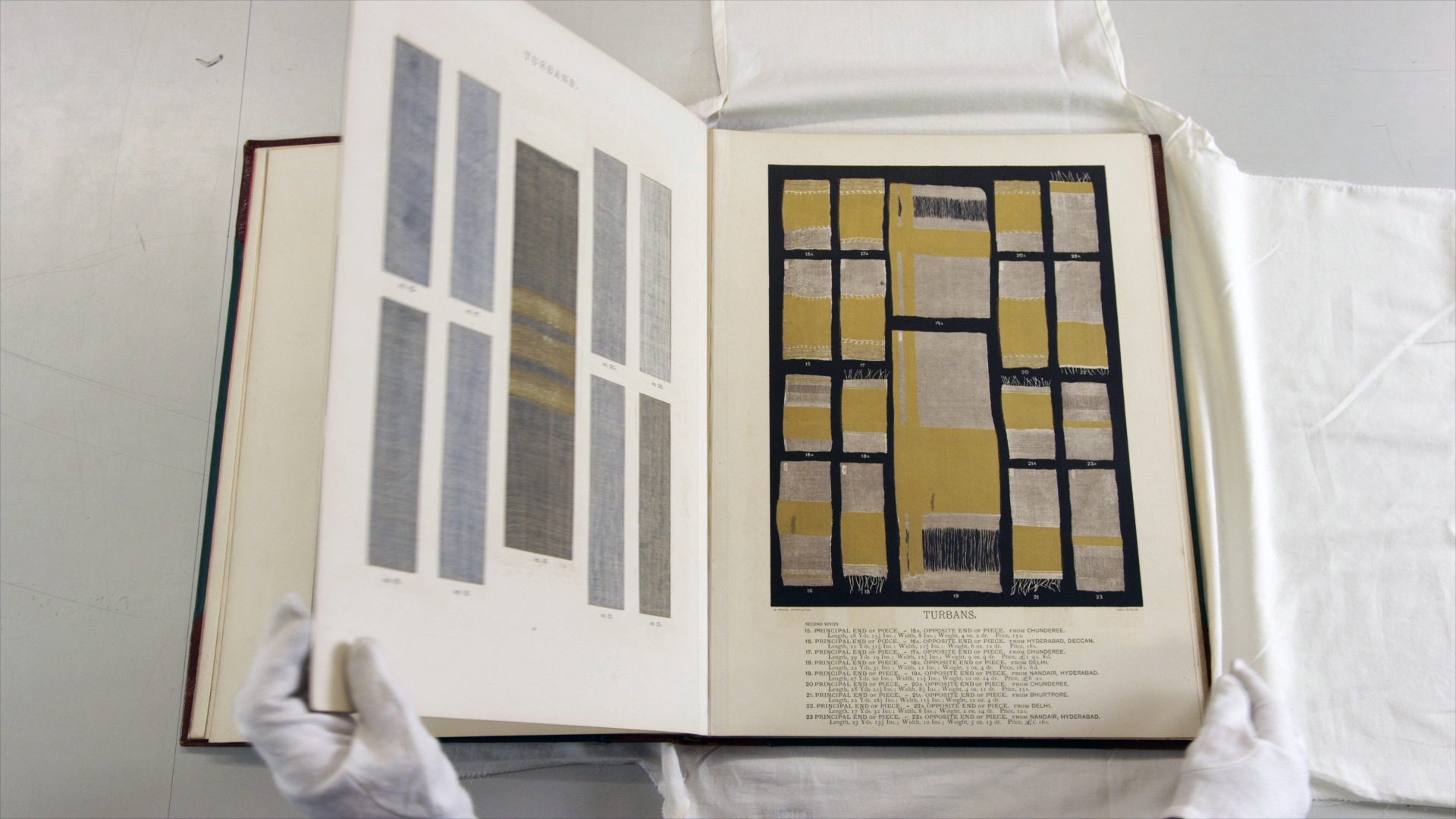 In her short film Patterns of the Conquerors, artist Sascha Reichstein leafs through the folios of an extensive collection of fabrics. It was compiled by John Forbes Watson, "Reporter on the Products of India", and published in 1866 under the title The Collections of the Textile Manufactures of India. Watson wanted to draw the attention of British textile manufacturers to the wide array of Indian fabric design, with the ulterior economic motive of industrially producing inexpensive Indian textile imitations in England that would subsequently be (re-)exported to the British colony.