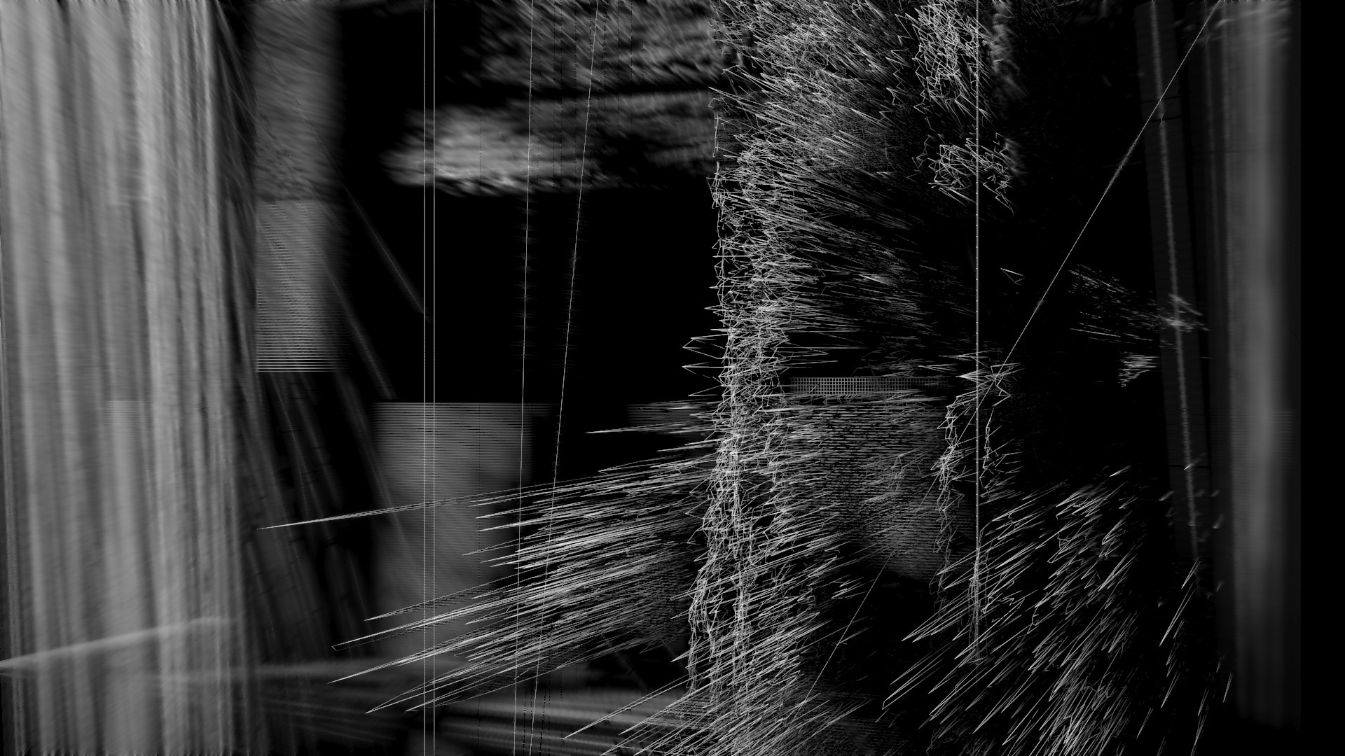 The camera has the task to observe the events and to move through the architecture to understand them and is supposed to create a sort of narration through its movement, which in turn creates something disturbing and frightening in this extremely radical and chaotic state of space. Similar to the camera, the light source moves more or less randomly and additionally creates a factor in the perception of the spaces and their dimensionality.