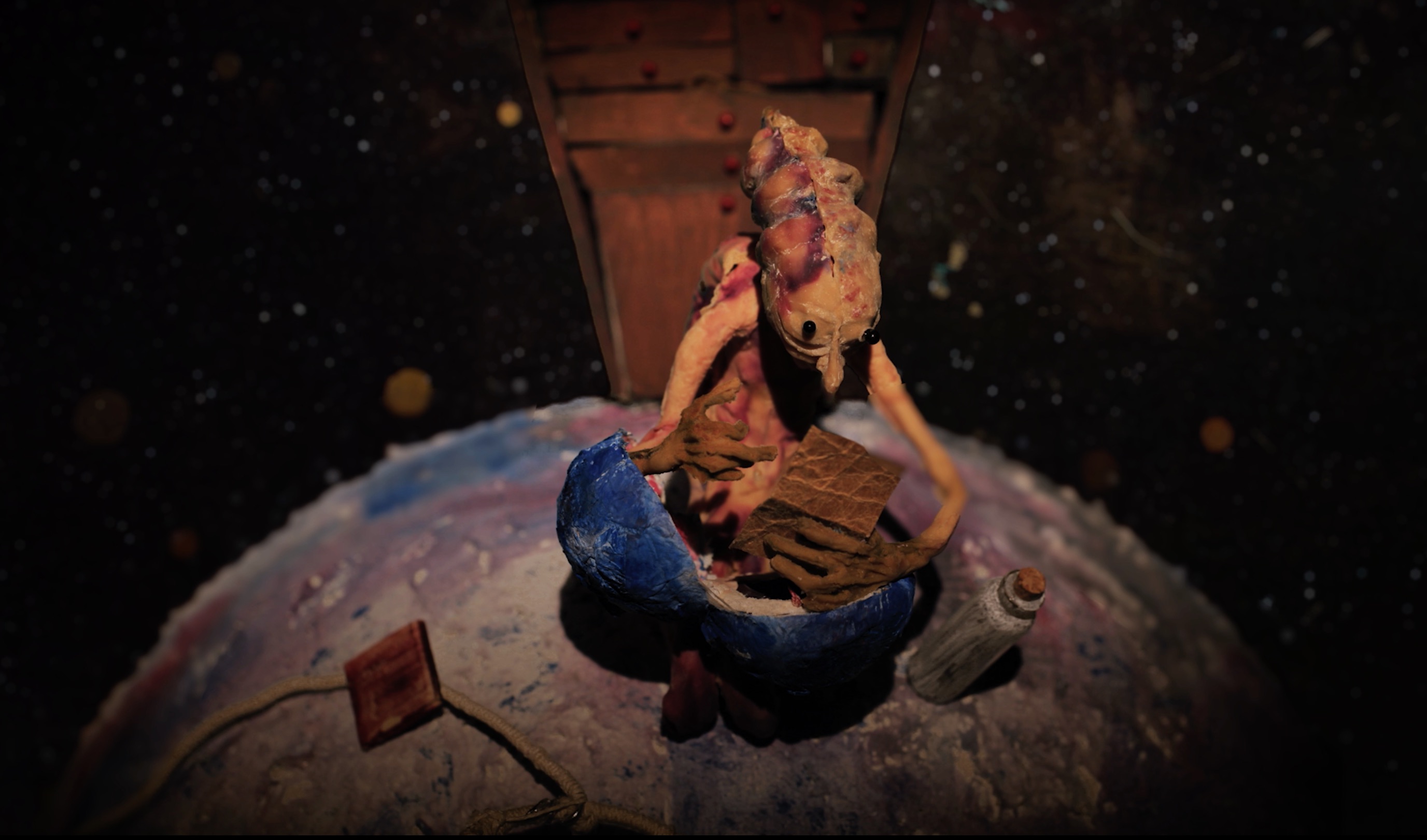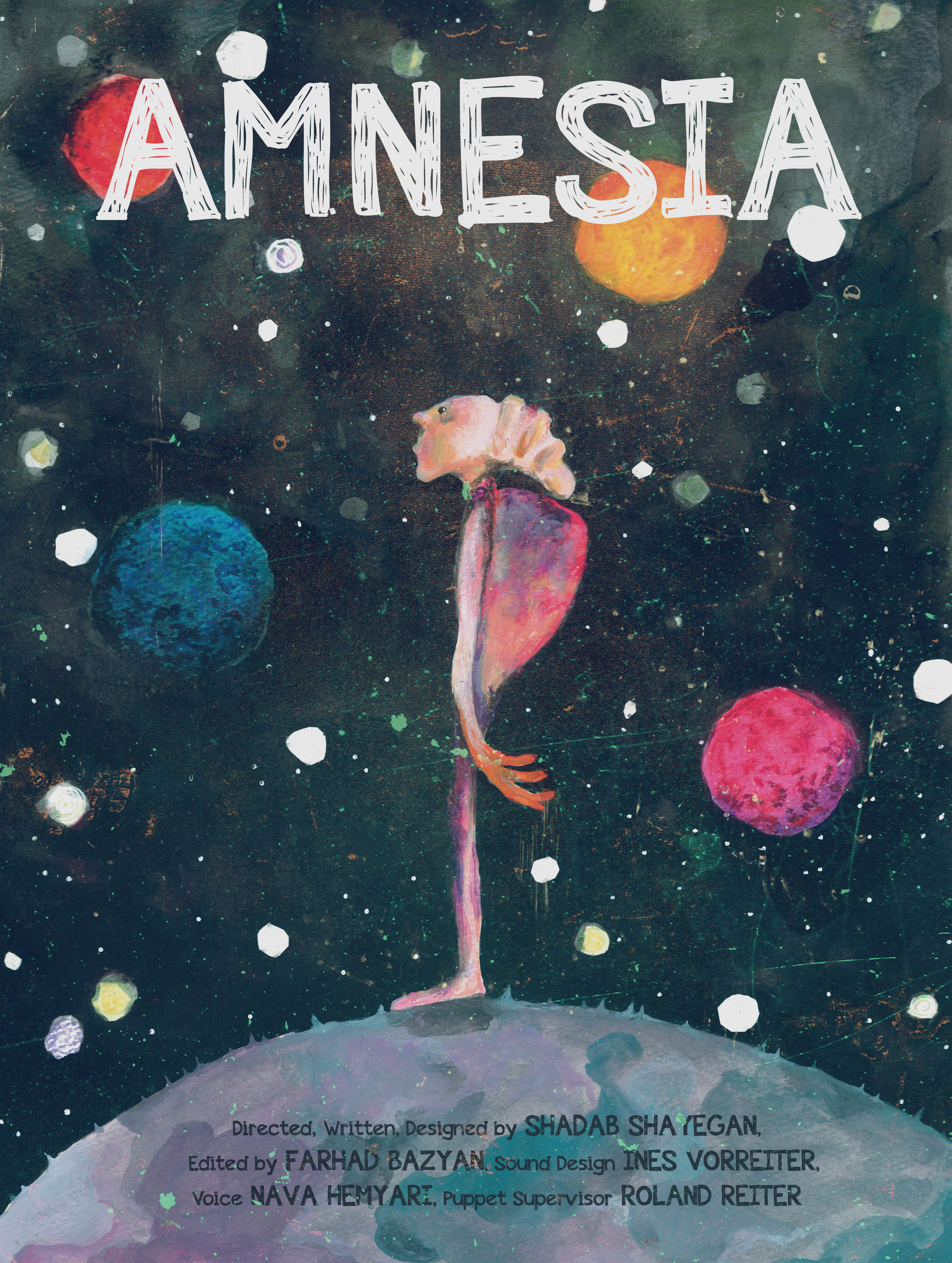 A latex figure from a distant planet in the far expanses of the universe; raving, hungry, and trapped in an inner monologue. Shadab Shayegan designs an impressively profound reflection on loneliness, loss, and mania with minimalist drawings and bizarre puppet animations: amnesia as a metaphor for the futile search for answers to life´s existentialist questions. (Diagonale 2018)