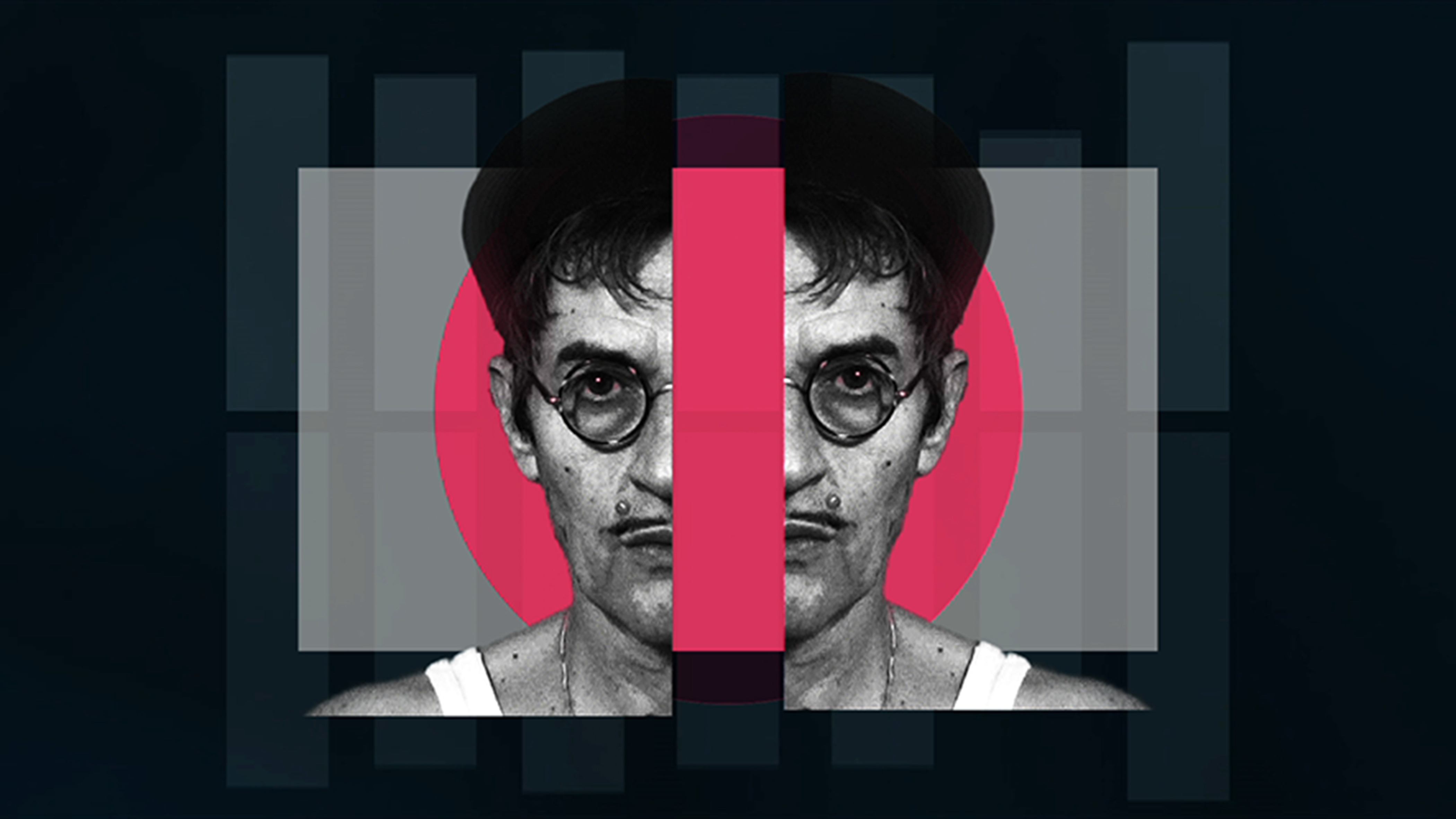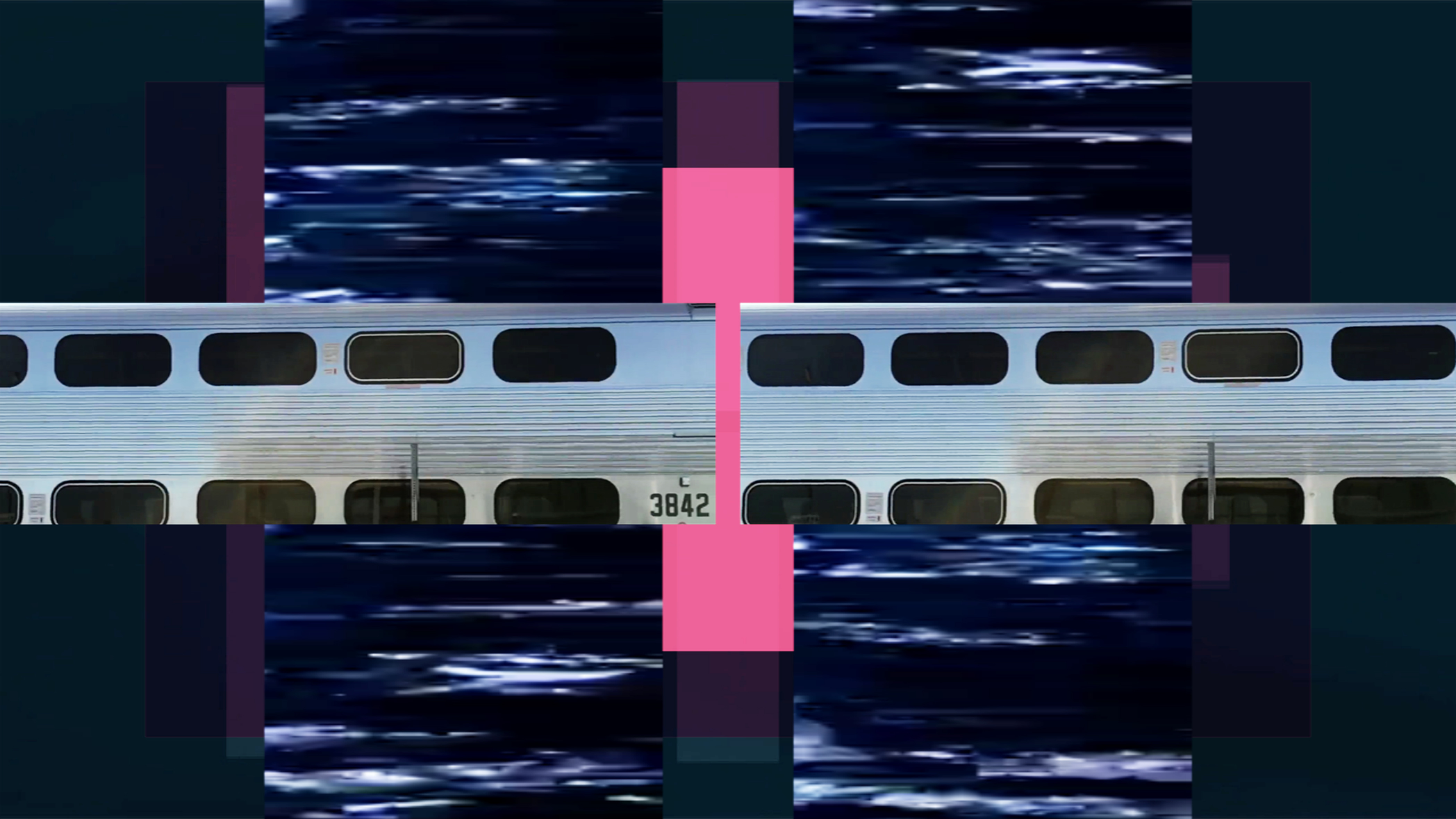 Seemingly unrelated images flash in front of the background of a pulsing bar graph: a face, the lower half of a male body with four legs, black smoke, a white cloud, an ice cream cone, railroad cars, all move vertically across the image. The sequence of visual motifs first begins to grow a bit calmer when a greyish pink rectangle containing the black and white image of a man´s head moves to the center of the screen, where it then again becomes mirrored and fragments. The head belongs to the musician Chris Imler who is heard on the soundtrack singing about living life on the edge – perhaps so desired – to the hypnotic rhythm of oriental/ psychedelic style music: "Do I deserve not to get what I deserve?/ Do I deserve the battle I battle?/ Do I deserve to run off the rails with all the other trains?/Or maybe crashing is also the fun of the ride?"