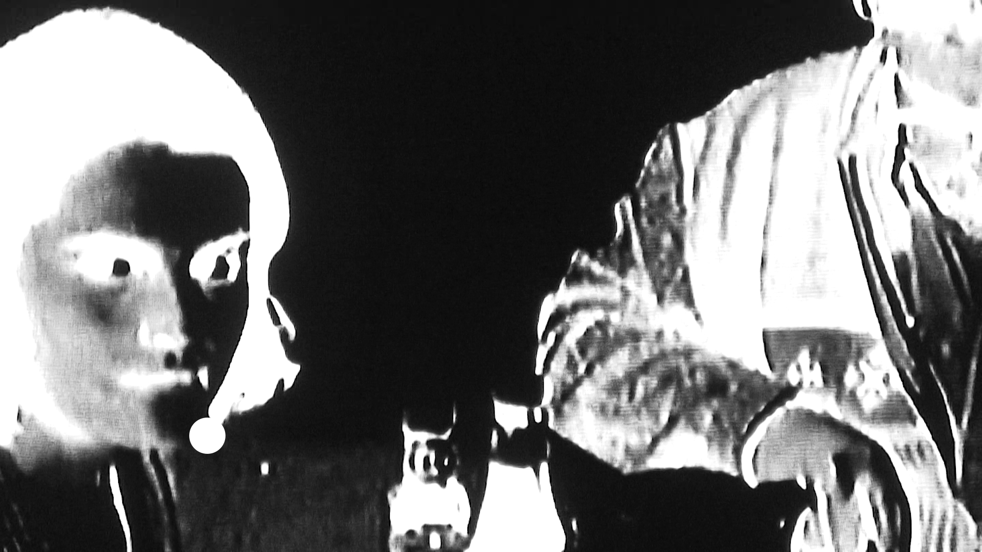 In summer I remembered again the distorted perception of the Trainspotting session ... Although it seemed dangerous to use this cult film as found footage material, I risked to film the film with an HD camera fragmented, inverted and disintegrating the normal time structure, several times. As a result, I conceived the selection exclusively on interior scenes and again fragmented the frame. For the end I realized a sequence of scenes with faces in close-ups, which, presumably imperceptibly for the viewer, again refer to the beginning of the film. Then I established the white dot and let it slowly glide through the image. In addition, I extended the black film between the title and the first scene.