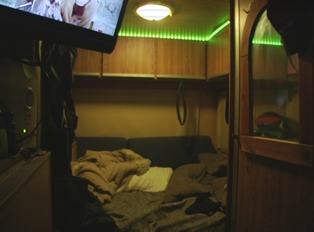 Instead of living in his house, Erwin spends most of his time right next to it – in a mobile home outfitted with his laptop, bed, coffee machine and television. Jan Soldat's portrait of the 58-year-old man likewise concentrates the essential in one small space and altogether avoids the ornamental accessories characteristic of standard home visiting documentaries. The conversation unfolds within a few soberly framed takes. Erwin shows the filmmaker his current web-cam set-up for sex chats, tells him about the two loves of his life (plus providing care for their female partners and children), familial fall-outs, and worries about impending governmental cuts to his poverty assistance. Like many of Soldat's films, Erwin takes sexual routine as its point of departure. Desire is not on display or interpreted, but instead captured as integral to common and insufficiently documented forms of lifestyle and relationship. These forms of relationship include the filmic encounter between the filmmaker and the subject he is portraying: Restrictive biographical formulas are avoided through the combination of Soldat's friendly, direct questions and Erwin's concentrated willingness to provide information and pleasure performing for the camera. Erwin's staging of himself as a "horny pig" tugging on his nipple clamps, his sexual fantasies involving his own father, the hardships of typical gay life in rural Austria as of the 1970s, territorial and social isolation inside a shuttered mobile home with a laptop serving as the only window – each piece coexists equally in the film, without one telling more about Erwin than the other. By the time a naked ass bids us farewell, Erwin has already made clear that here exposure serves the aim of self-determination and making contact. (Joachim Schätz)