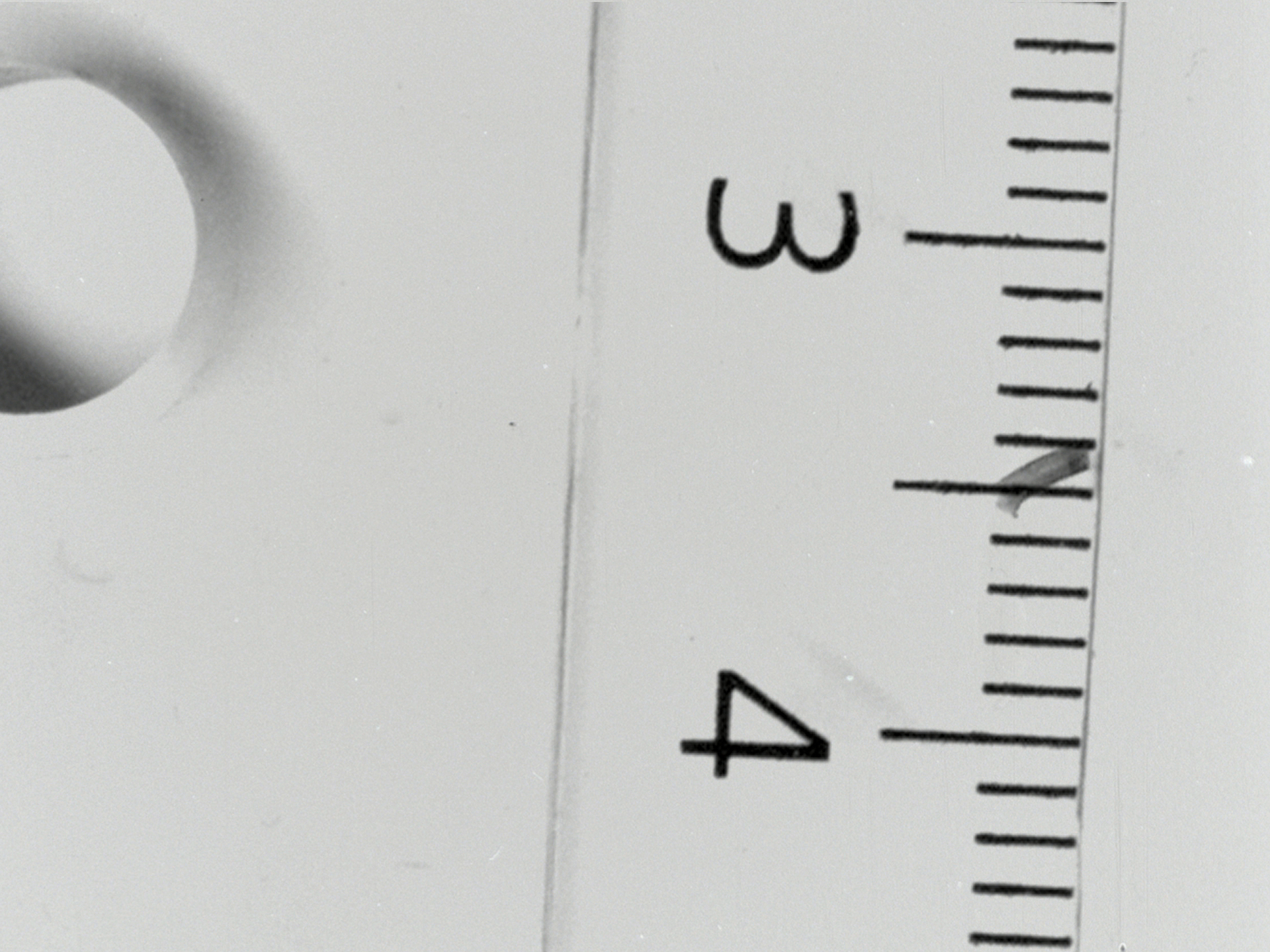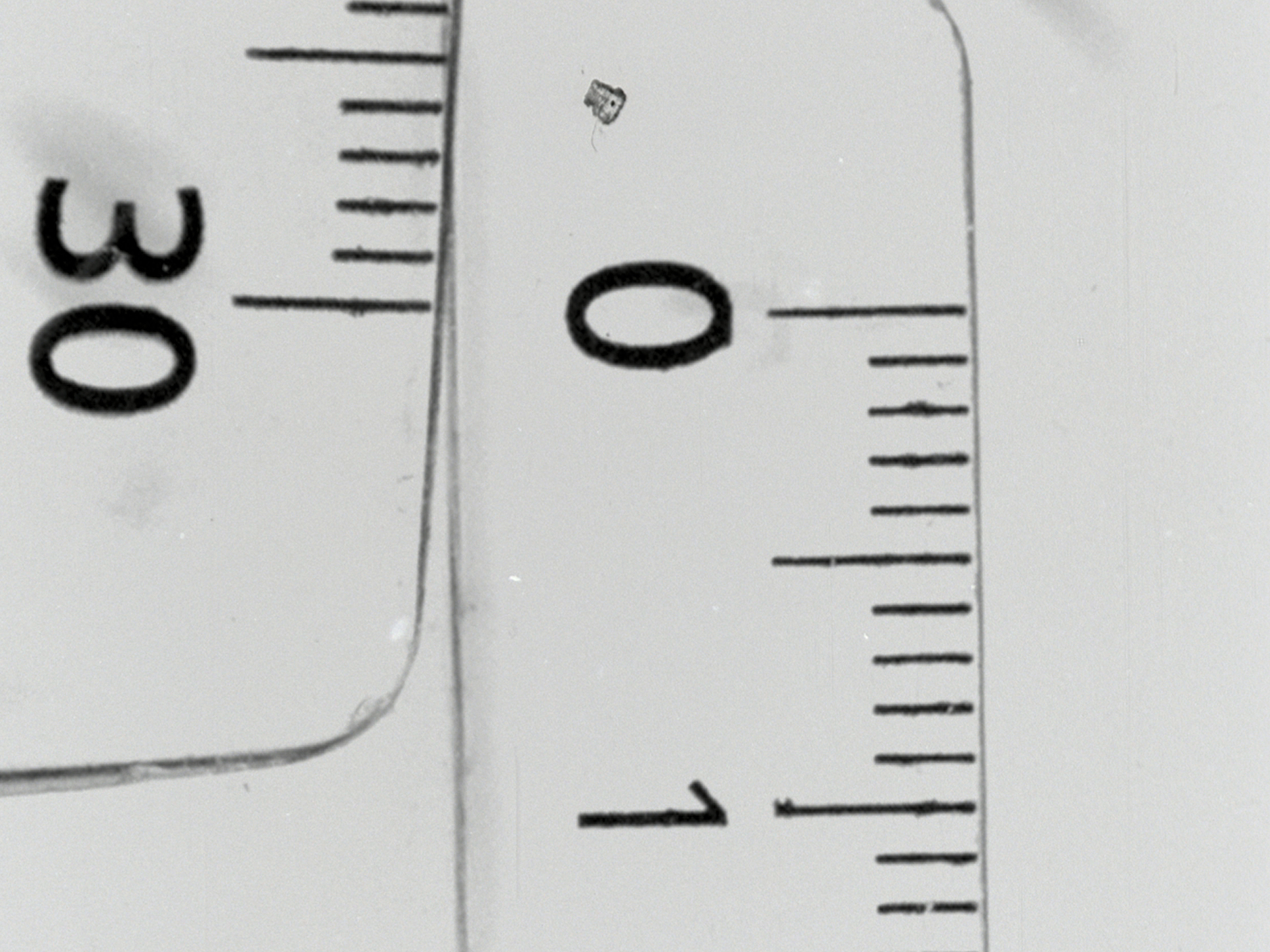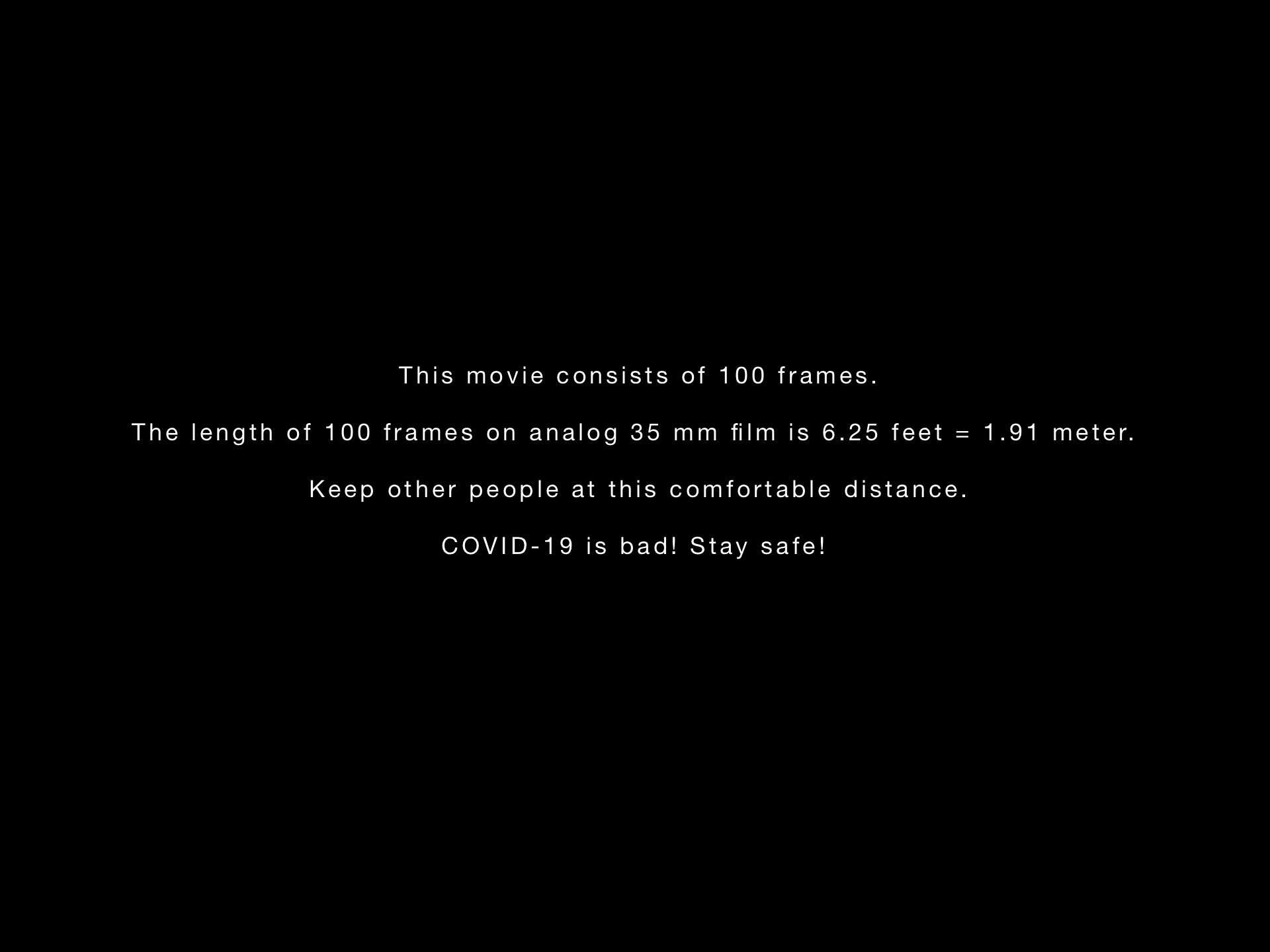 The length of 100 frames in analog 35 mm film is 6.25 feet = 1.91 meter.