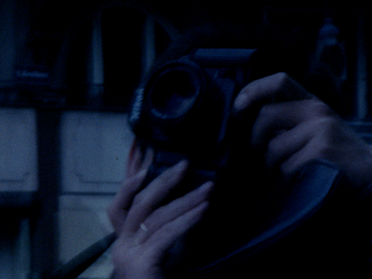In Cmelka’s earlier films, Mit Mir and Et In Arcadia Ego, the filmmaker plays with her own doppelgangers, superimposing herself upon herself multiple times. Camera uses similar optical tricks to print moving images of woodlands on the interior walls of a small room. Recall that “camera” merely means “room” or “chamber” in Latin: so is the film camera offer a window on the world, or merely in illusion of one? Maybe we can’t really leave the room—or camera—after all.