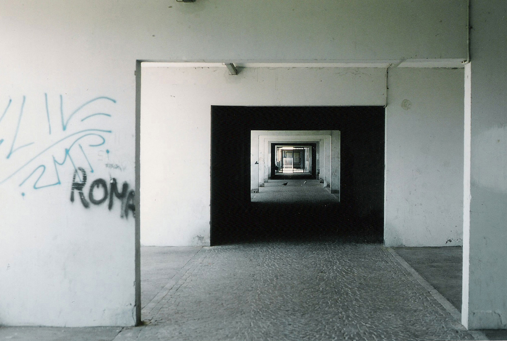 As in a collage, shots capturing the construction’s perspectives, its decaying facade, its interminable passageways, its inhospitality, interlock increasingly with the way the inhabitants themselves see their living place. Their voices come from the off, not many but enough to give a true cross-section. They tell for example of how they were driven from the heart of Rome by the new tenancy laws that came into effect in the early ’80s. Or relate how squatters occupied the fourth storey, which was originally planned as an “inner city” with a shopping mall. The voices remain anonymous, hidden behind the facade, all except that of an old man who, like many others, came to Corviale in the 1980s. The camera accompanies him as he walks about the building, watching on as he tends the plants, feeds the pigeons or looks after feral cats. And continues to follow him as he leaves the building and goes walking in the open fields that adjoin the rear of the building. This figure brings together the various narrative currents in the film as he attempts to overcome the contradictoriness of this place and fill it with life.