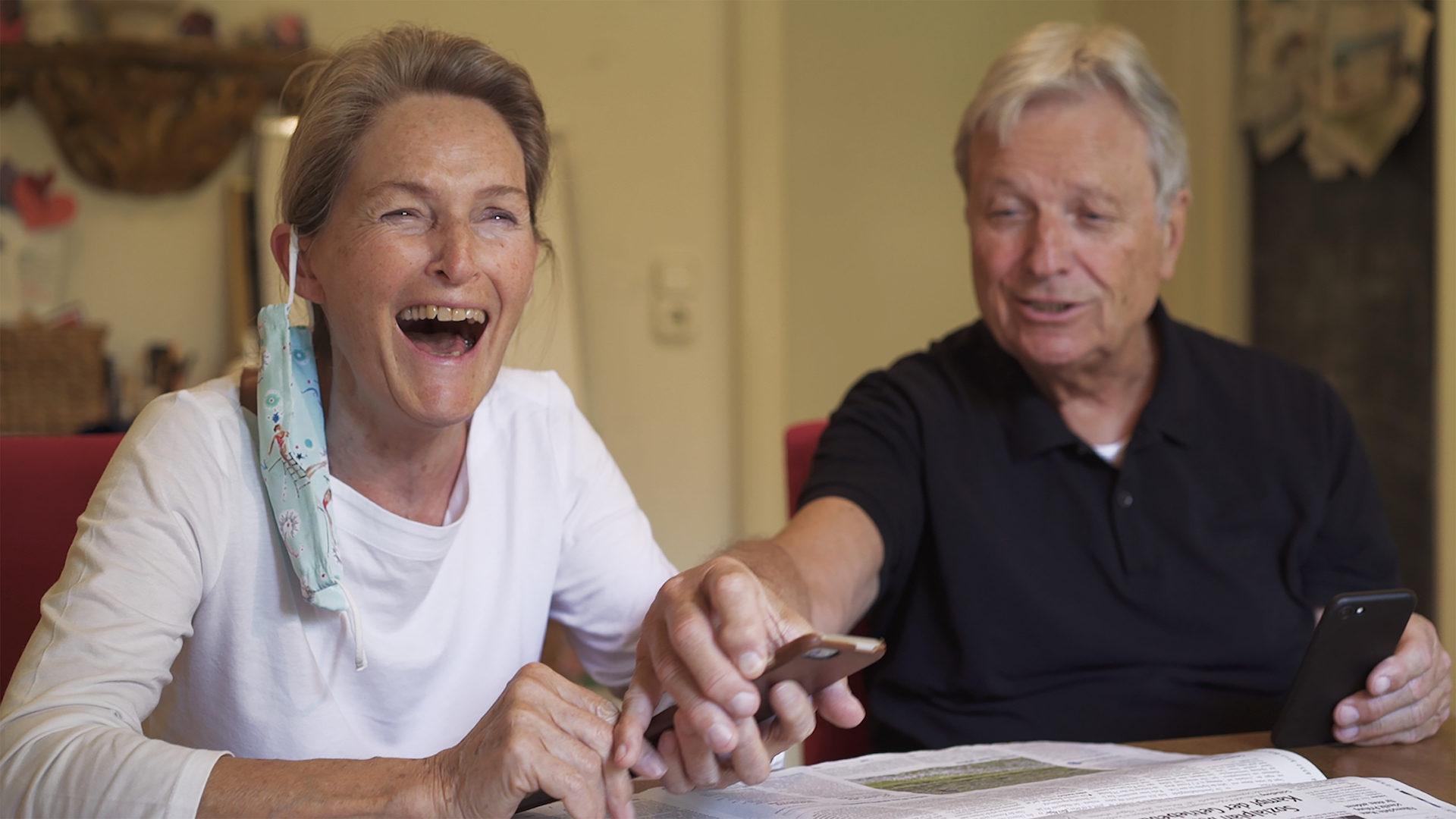 A film project done at the kitchen table, from the level of the vacuum cleaner. Sophie Bösker rearranges her familial setting. As a grown daughter, she returns home during the Covid19 crisis. The possibilities are limited. Public space is in lockdown. Encounters with unknown people are rare to nonexistent. What else is left to do but encounter one’s own family in their friendly alienness. So, a sci-fi film in quarantine. With a recording instrument that offers only partial protection from the family confusion; a camera. Does the microphone work? Ok, the director sighs. “Now I’m calming down again.” And goes on, “I have to make a film about what I have. Mom, Dad, and me.” The apparatuses work. But the material, the protagonists, to begin with, they rebel in their routine domesticity. They’re complaining. Maybe the aliens have attached to the family’s electromagnetic rays and are exerting more and more control. The mother makes sure of the connections; the father, the gaze in the camera; and the brother, the tension. They step out of their roles and then back into them again. Moods under observation. The situation throws everyone back upon him or herself. Yeast dough and vacuum cleaner and lawn mower and jogging pants and there it is again, the issue of wages for housework. Sophie Bösker has achieved a concise piece on family dynamics, on the backstage and frontstage of a household and at the same time, on the role of the involved invader. The subliminal sense and silent gnawing. Pandemic insourcing, lockdown number one, 2020. (Madeleine Bernstorff)
