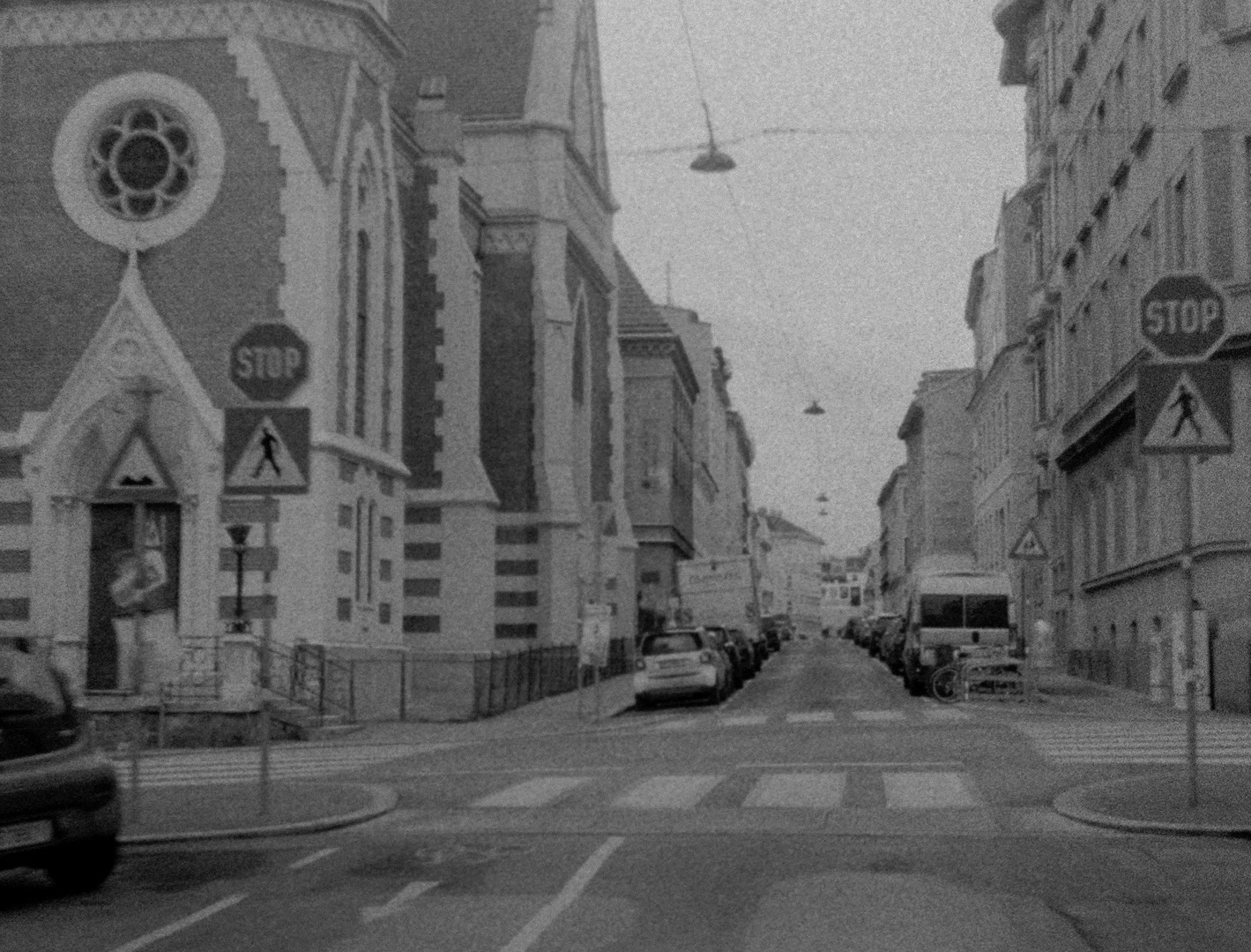 Over half a century has passed between the two films. In January 1967, Hans Scheugl shot his first independent work, Wien 17, Schumanngasse: a phantom ride of barely three minutes in which the beginning and end of the street also mark the beginning and end of the film. In January 2020, Karl Wratschko produced a “remake”: the same street, the same duration, and the same format, 16mm, black and white, no sound. Remade: Hans Scheugl's “Wien 17, Schumanngasse” is less of an artistic appropriation than an homage, a revisiting of a classic of the Viennese avant-garde. In contrast to the usual practice in commercial film, this remake is intended to neither outdo nor supersede its predecessor, but rather to bring it back to life, and back to the screen with a stronger presence.