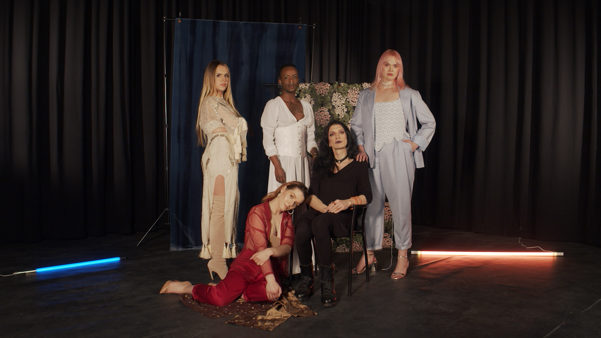 The "gaze" is as elemental to film theory as salt is to soup. So when Rosa Wiesauer promises an "alternative regime of the gaze" (Robin McRuer) in her film title, the stakes are high! The so-called "male gaze" implies a paradigm that divides the pleasure of watching into an active masculine dimension of looking and a passive feminine dimension of being looked at. In order to establish this binary logic, traditional cinema initially hides the fact of the camera's gaze. Entirely in line with the tradition of feminist filmmaking, TRANS*GAZE breaks with this convention from the start: We see backstage lighting, stage markings and accessories. The subjects speak expressively and convincingly about what Jack Halberstam describes as "queer time and space" as they look directly into the camera: trans*gaze.