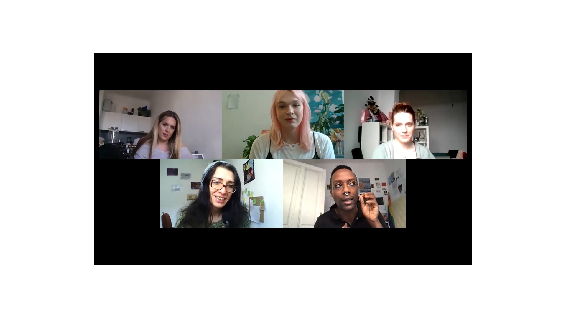Lines of sight beyond these moments remain within the genre, in the form of talking-head interviews intercut with costume and gestural details, and scenery illuminated in front of a black background. But the mise-en-scene of Wiesauer's work departs from the traditional "confessional" film with sly self-irony: Flowers are arranged in vases and a blossoming tapestry depicts the porcelain motif of a Hoya carnosa tricolor, a voluptuously blossoming flower that releases its intensely sweet fragrance only at night. And so it is that when the five protagonists speak for 20 exciting minutes about the particular temporality they experience (waiting for the transition, the permanent process of gender performativity), and they talk about specific locality (the meaning of public space in relation to passing, virtual space as potential for community-building, activism and political intervention), as well as the patriarchal mechanism of systemic discrimination (gatekeeping), a discursive articulation coalesces which film language can only imply: trans*life radically challenges the boundaries of the binary. How beautiful that Rosa Wiesauer's film so precisely maps and simultaneously unapologetically celebrates this trans*life. (Andrea B. Braidt)