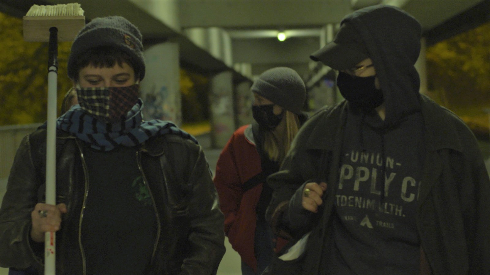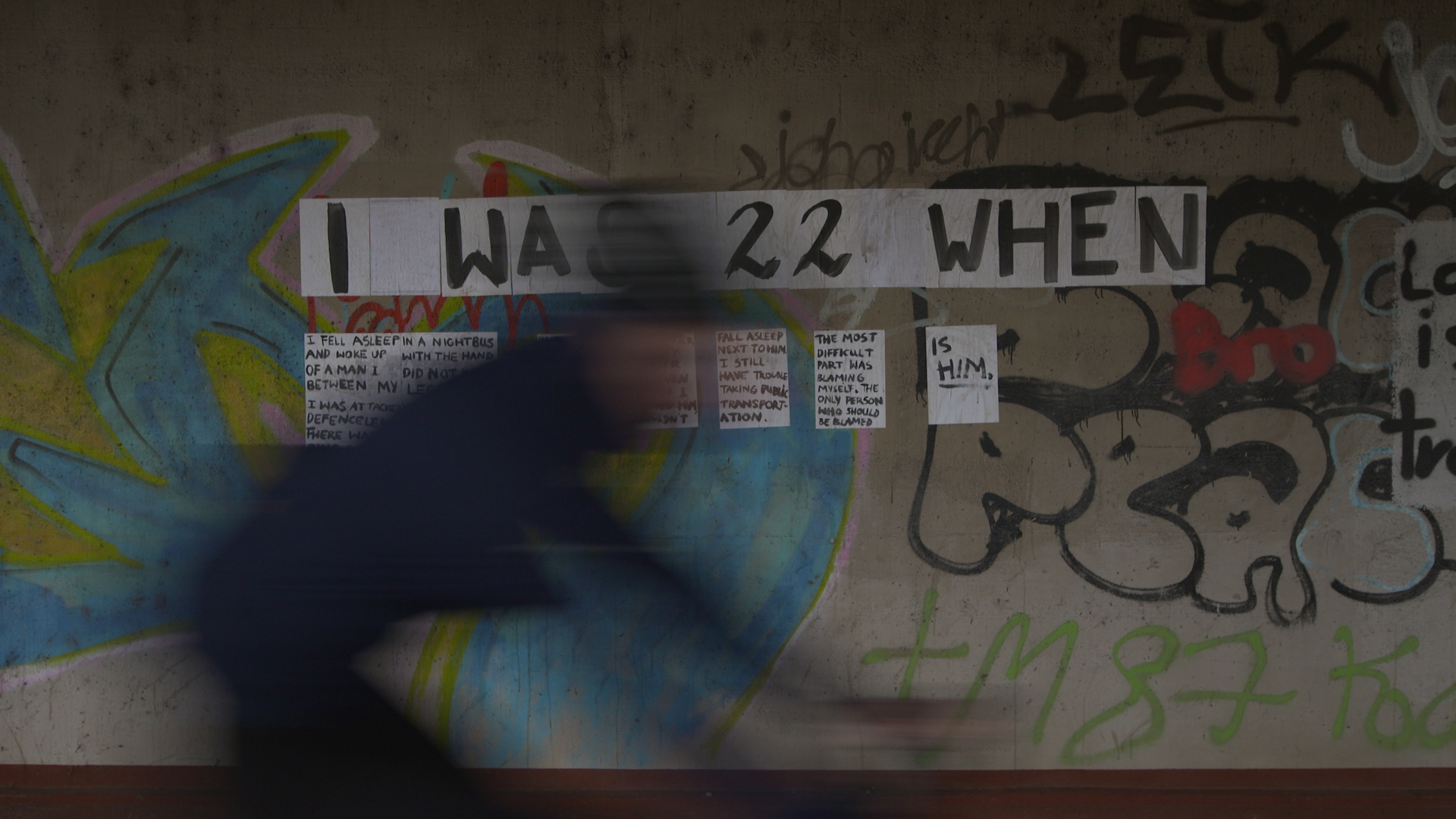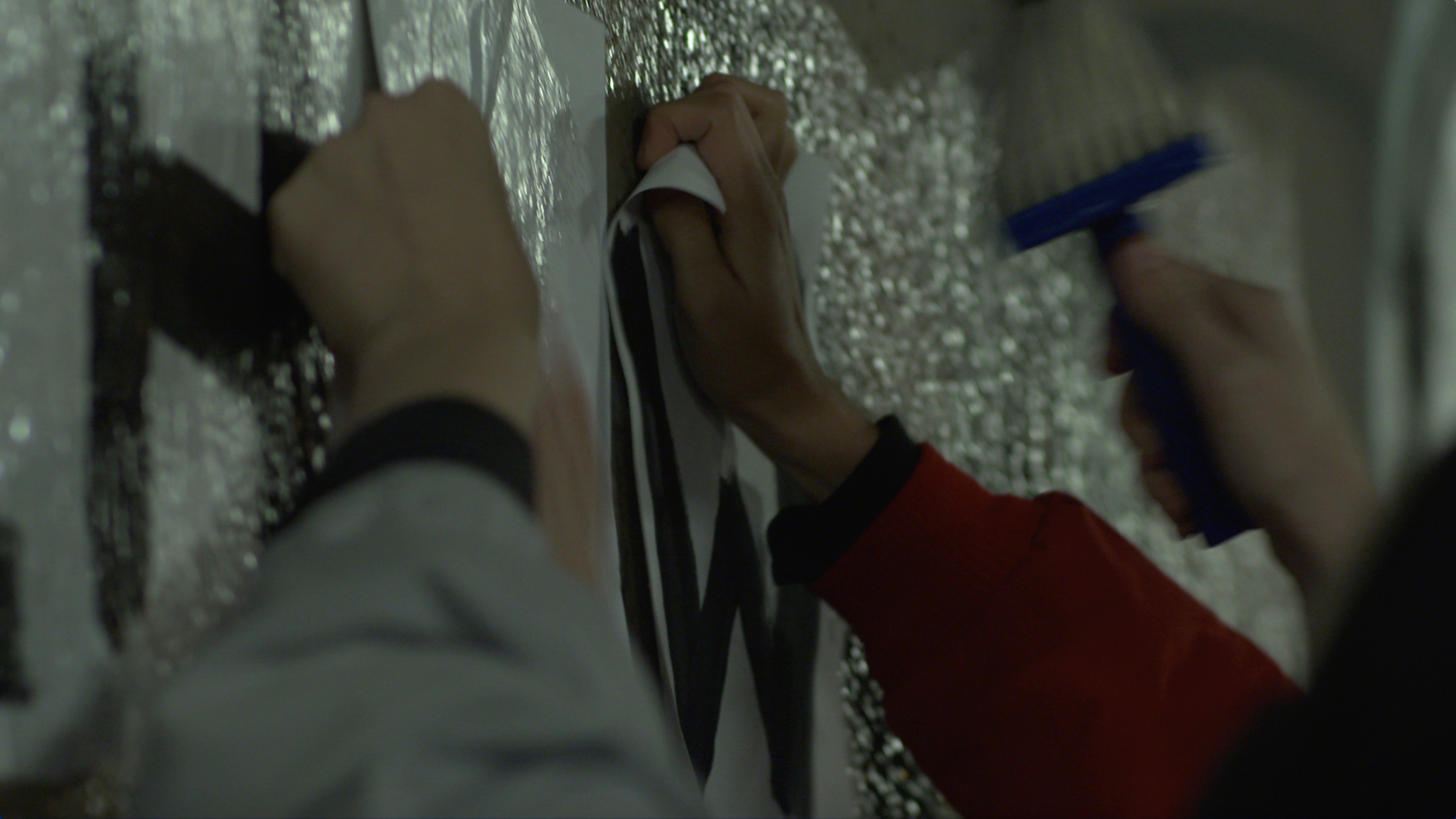 At the start are close-ups, they are blurred. Eyes, mouths, noses, hands enter the picture. Scattered, nearly puzzle-like. The tone is also minimal and offers no clues as to what we are actually looking at; we hear paper, glass. We grope in the dark, it is silent. Step by step—after a fade-in of the title—the camera offers more context: the paper that is being written on, the writing, the drying of the paper. It seems as though we are reminded of Japanese or Chinese calligraphy: a ritual that accompanies production of an artwork. Calligraphy, a strongly expressive art form focusing on the development of individual expression within a specified frame. Cordula Rieger’s THE GALLERY documents the eponymous action by the FLINT collective (women, lesbian, inter, non-binary, and trans* people) femplak_wien (feminist posters Vienna). Members of the collective focus on their individual experiences of sexualized violence—together and in solidarity. What was forced into silence for years is written down and exhibited verbatim. This allows a larger picture of omnipresent gender-specific violence to emerge in public space (namely, under the Reichsbrücke, and also virtually on femplak’s Instagram channel). The protagonists arrive at their own specific expression, first by writing, letter for letter, page for page, then also acoustically. They narrate from off-camera, one story becomes many that overlap and flow into a polyphonic choir. THE GALLERY carefully compiles the puzzle pieces—faces, stories, voices—and constructs the larger, collective context. (Sylvia Szely)