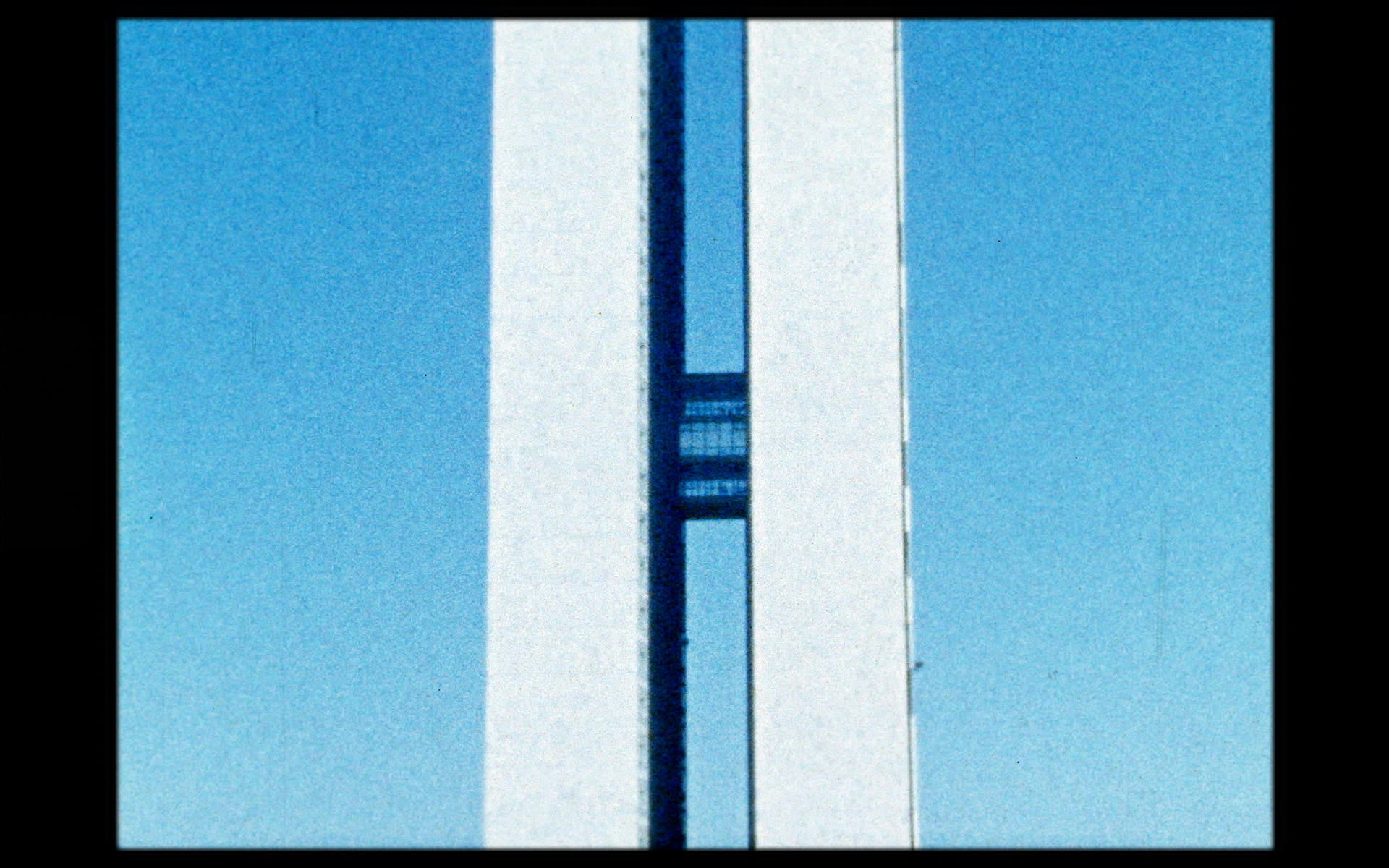 Coupled with this audio drama are images of a 2006 trip to and through Brasilia. Németh had taken the Super 8 reels he made at the time, while visibly under the spell of the architectural utopia that became reality in 1960, and stored them in a drawer for years. They now represent the congenially adverse counterpart to the Rote Wueste track. The editing of the coarse-grained celluloid images follows the digital angularity of the music. Over slowly increasing filter noise, we first see black and white photos of motorway exits and other monsters of mobility; then, punctuated by abrupt percussion and carried along by a creeping beat, tracking shots move past endless rows of apartment blocks and trees. After a repeatedly used blank film frame intermezzo, the second act follows: facades, pools, window fronts with bizarre reflections, concrete structures, all in color, rhythmicized into an artfully shimmering ballet of forms. Finally, the contrapuntal third act, again in black and white, shows workers on construction sites and again journeys through built-up urban hinterland – until, as it were, redeeming color shots point the way out of this seemingly lost historical magic. Music has always been in the now; utopias linked to it form its indispensable other.