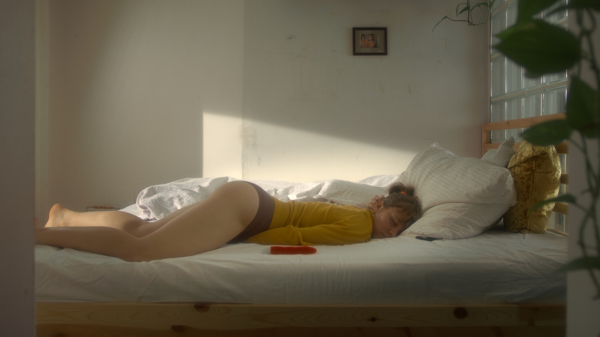 A young woman indulges in erotic daydreams. The lead actors in the sexy cinema inside Thea’s head include: the gorgeous bartender from the trendy bar, who thirsts for menstrual blood; Laura’s “beautiful cousin” who plays the Magic Mike of Drag in a saucy mesh shirt; and not least of all, superblonde Sasha, an extra cool bondage expert and rigger with an exceptional sense of order. But even in her imagination, Thea encounters quite a few hurdles: What do you do with a hot pickup when the object of your fantasy doesn’t speak the same language? Are strap-ons a no-go? What about when irresistible hunger hits during a bondage session? With its humor and explicit attention to sound design and Foley effects, the film’s snaps, crackles, and pops are enough to delight any fan of ASMR, as multitalented director Marie Luise Lehner browses through the full catalogue of kink: hair, feet, nylon, sploshing, play-fighting, shibari – you name it.