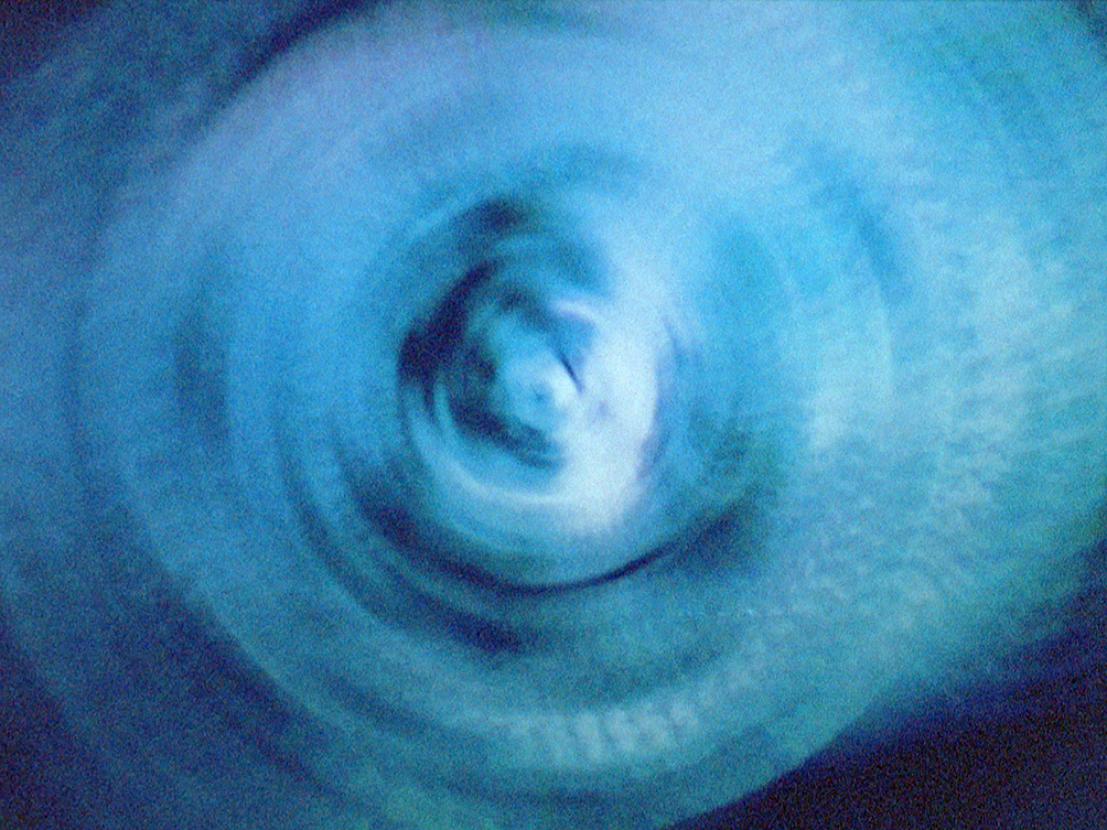 The artist designed and operated the technical apparatus for this. Recordings from server farms and data centers, which are the result of various translation processes between World Wide Web, expired 16mm films, and digital video, are sent into a metaphorical and literal maelstrom - becoming a mechanical eye that looks back and looks at us, the viewers. In return we look briefly into the abyss of the resource consumption that the server farms require to store millions and millions of bits and pixels.