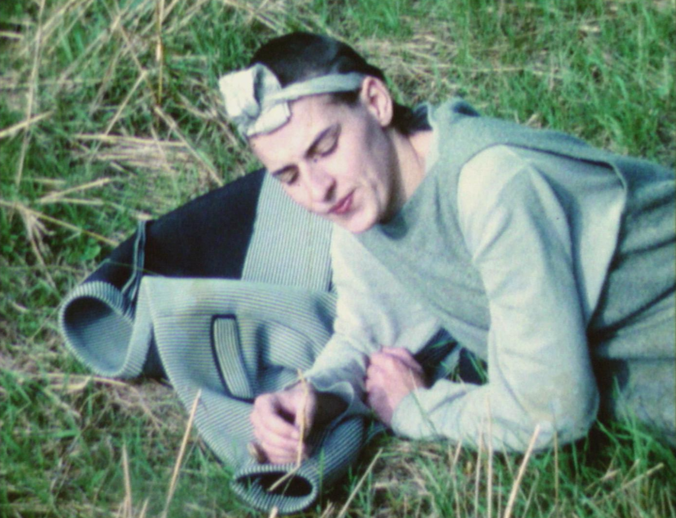 Pürrer and Scheirl are out and about in nature, exploring it and each other. Lying in the grass, Pürrer inspects the meadow with a magnifying glass. Clothing is put on and taken off piece by piece, exposing various parts of the body. The two climb trees and tree trunks, pose, smoke, and touch each other. (Magdalena Steffan)