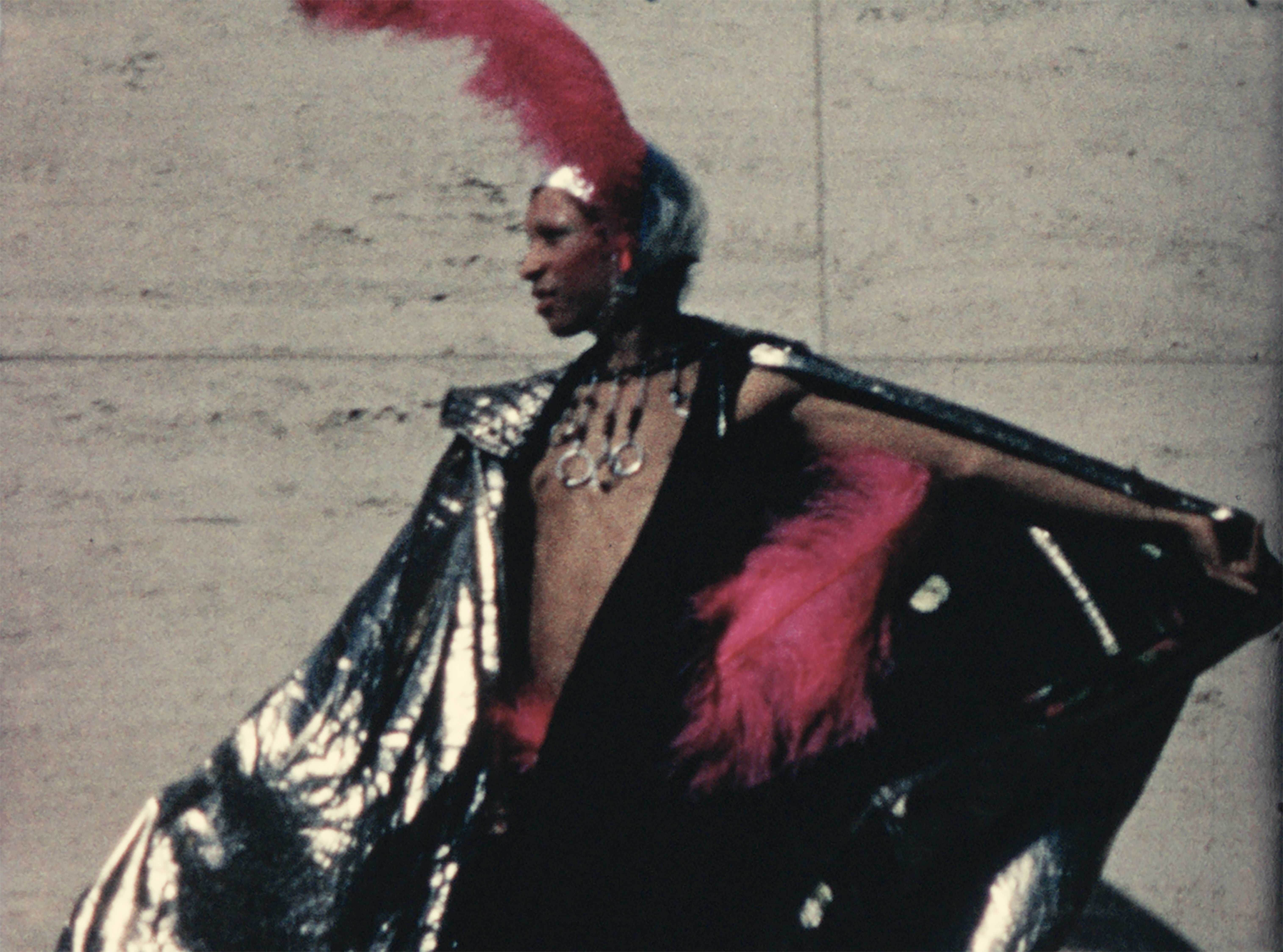 Broadway I–II are exploratory documentations of street performances in 1970s new York. As indicated by the title, Lassnig filmed drag performers and a street theater troupe on Broadway, one of Manhattan’s major thoroughfares. The films revel in the stylistic experimentation of the street performers, and the playful approach to costume and identity that characterized the city’s vibrant queer communities. Inspired by the economy and ingenuity she witnessed in such street performances, Lassnig