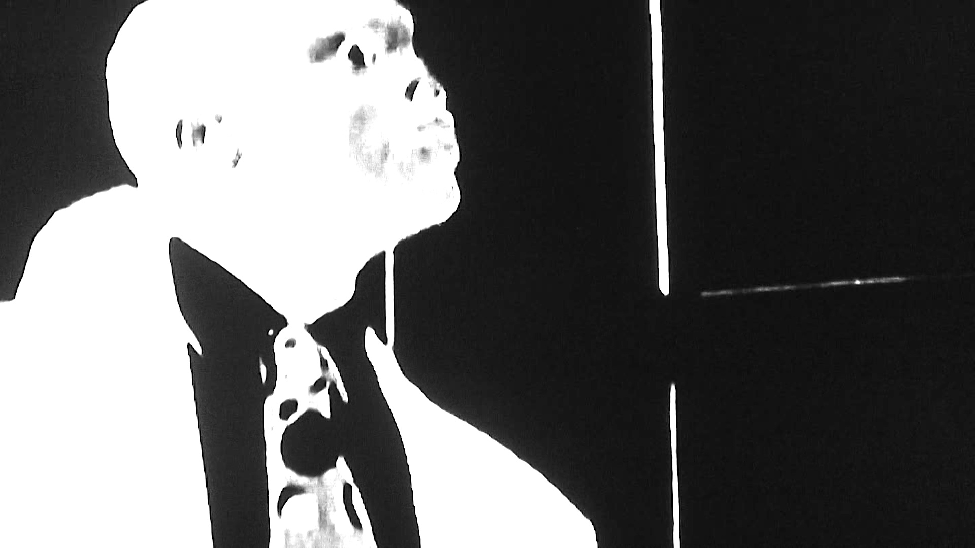 The rhythms are not only fueled by the editing but also given contour by virtue of rapid shifts to negative, resulting in a high-contrast pulsation reminiscent of stroboscopic light effects. It is only Brehm's characteristic close-up of a face with eyes like two white holes that time and again provides momentary calm. Hylo-Vision-Plus. Version 1 is like an ornery piece of Pop-Art immersed in a state of intoxication, in which performances and bodies briefly lose their clarity. The film does not want to smooth things over or let the night end, but instead infect us with its energy. A silhouette of motion pictures from an underground without an emergency exit. (Dominik Kamalzadeh)