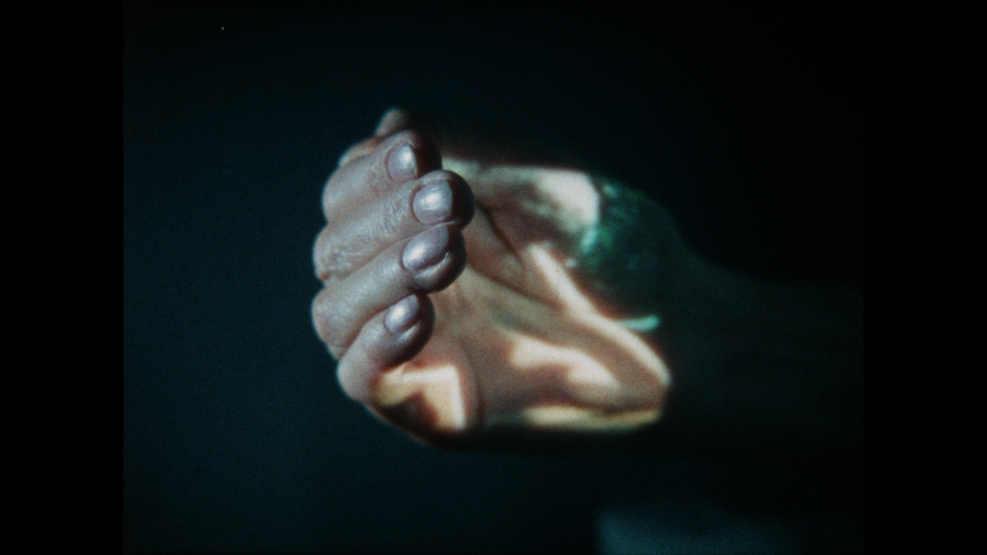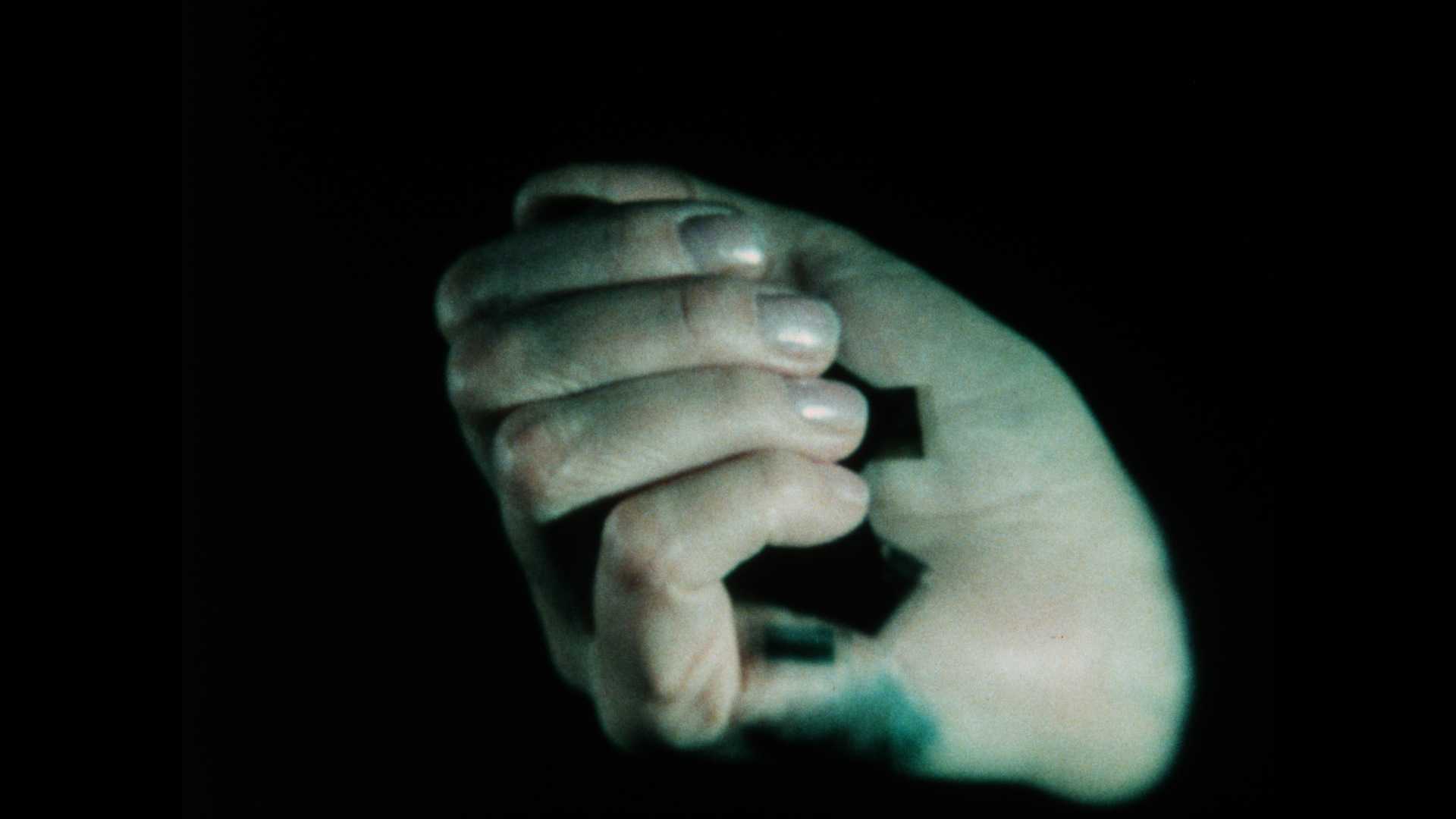 The original visual material for O.K. was filmed on Super-8 film, re-projected onto the artist´s hand and then re-filmed on a 16mm format. Rather than impose a rigid structural framework to refer the viewer back to the material process of the film itself, Blackout constructed a situation that refracts the reflection of her imagery back to the viewer in an ever-increasing series of image generations. That the "final" images rest, and are contained, upon the artist´s hand is a significant technique in the mechanical/chemical film process which is frequently overlooked. Also, the photographic imagery itself is constructed largely through the artist´s intervention, in concert with the limitations of the process. The re-presented images are indistinct upon her hand. Through this simple and effective method, inferring the tactility of the filmic image, Blackout proposes a situation of repeated construction of memory itself - the illusionary substance of film imagery that at times becomes indistinct, with the "surface" upon which it rests in reference to the screen, becoming the focal point of the observer´s perceptual act.