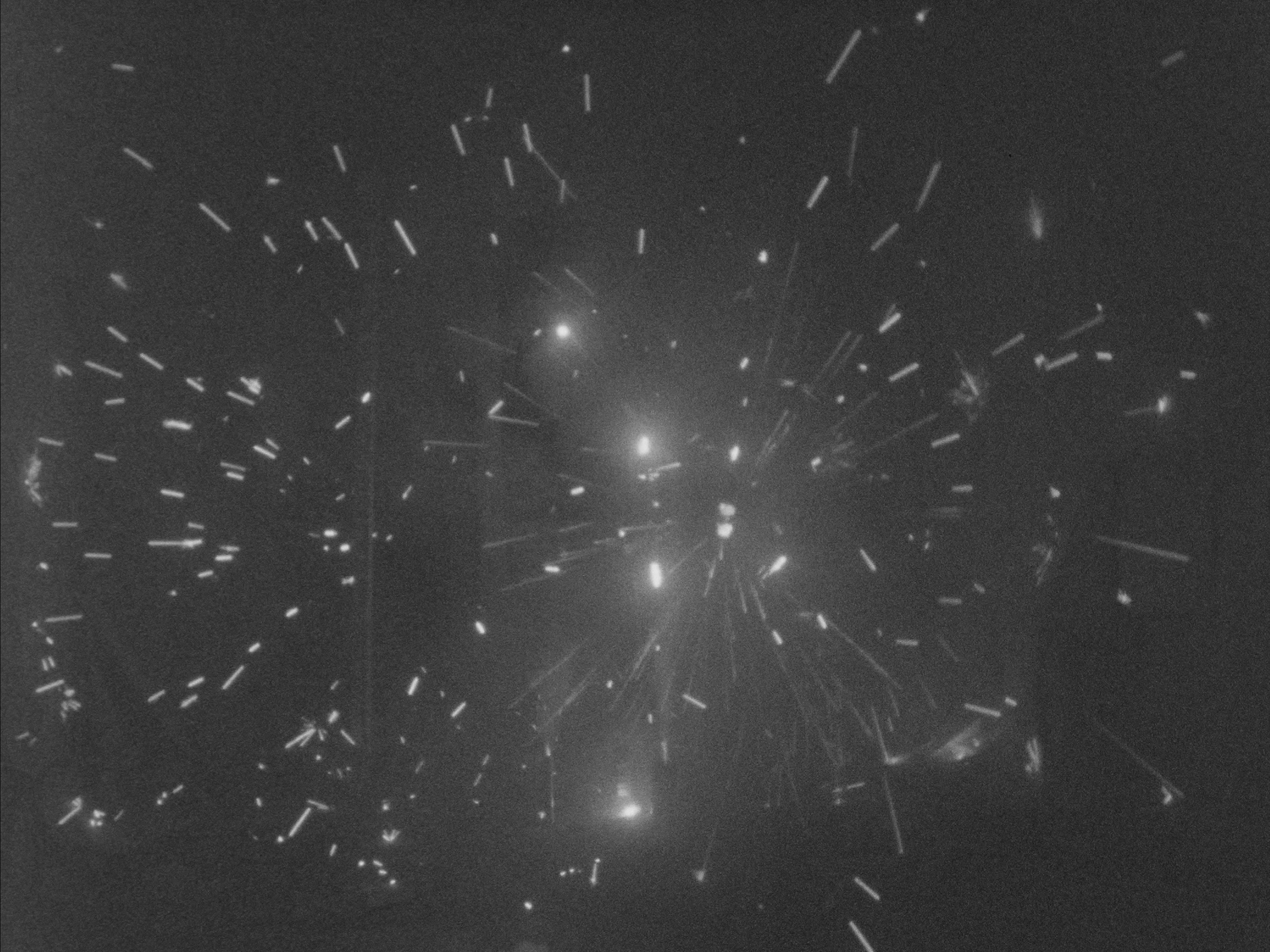 Ode to Demolition. Resounding thunder accompanies the sparks of exploding fireworks. Faint points of light grow into glittering fountains and cascades and illuminate what initially resembles a completely foggy night sky.