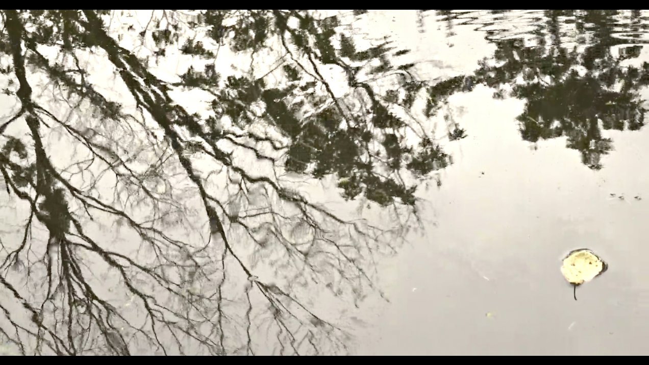 A close-up of water, trees reflected on its surface. Insects chirp, a bird squawks in the distance. Occasional raindrops dissolve into circular ripples that expand and vanish. An image of tranquility. Could it be Walden Pond, Massachusetts, where Henry David Thoreau escaped from society in 1845, living alone in a cabin he built himself? “I wanted to live deep and suck out all the marrow of life,” he wrote in the book Walden. Leading by example, he entreated the reader, “Let your life be a counter-friction to stop the machine.”
